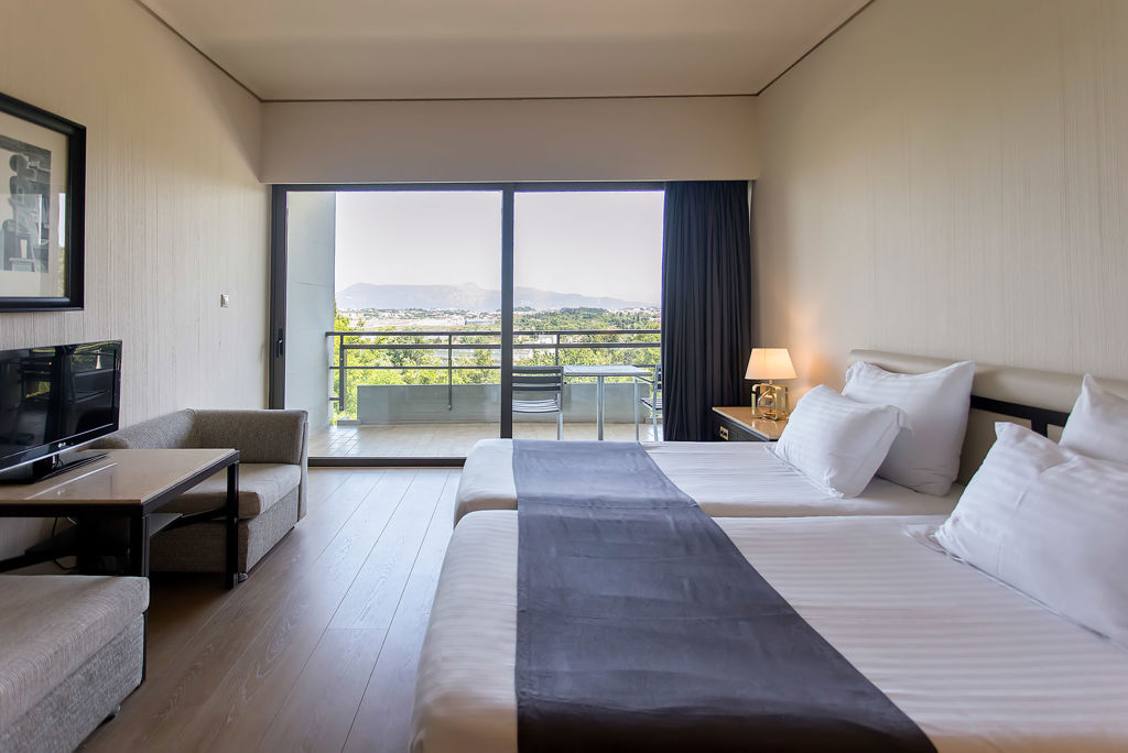 26 m² * Telefoon* * Airconditioning * Televisie * Koelkastje * Kluisje * Koffie-/theezetfaciliteiten * Wifi * Bad/douche * Toilet * Föhn * Slippers * Balkon of terras met zitje * Tegen een meerprijs boekbaar met zeezicht *Tegen betaling * Superiorkamer meerzicht (1-3 personen) * Ca. 26 m² * Gelegen op één van de hogere verdiepingen * Dezelfde faciliteiten als de Standaardkamer meerzicht * Tegen een meerprijs boekbaar met zeezicht * Superiorbungalow zeezicht (2-4 personen) * Ca. 40 m² * Dezelfde faciliteiten als de Standaardkamer * Tegen een meerprijs boekbaar met direct toegang tot een gezamenlijk zwembad Activiteiten & ontspanning * Fitness * Biljart* * Tafeltennis * Tennis * Massages en behandelingen* * Dagelijks livemuziek *Tegen betaling Kinderfaciliteiten * Speeltuin * Babybedjes (op aanvraag en op basis van beschikbaarheid) * Babysitservice op aanvraag en tegen betaling Verzorging Zomer: Corfu Holiday Palace * Verblijf o.b.v. Halfpension: Ontbijt in buffetvorm en diner in buffetvorm Extra informatie: Bij deze pakketreis is een huurauto inbegrepen, daarom vervalt de transfer van de luchthaven naar de accommodatie en vice versa.