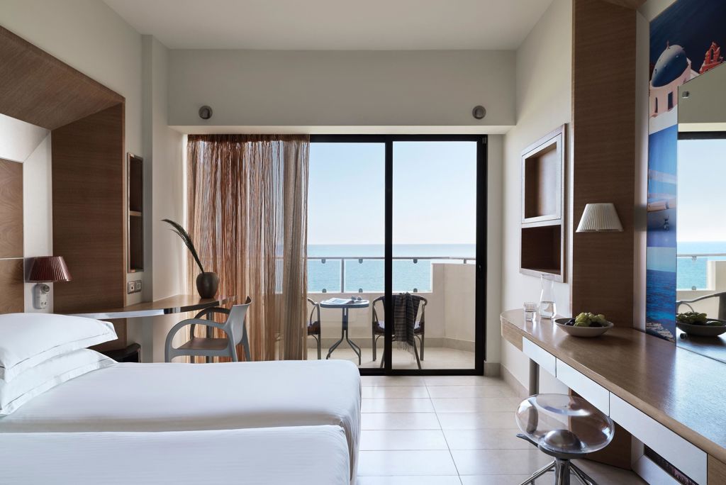 23 m² * Telefoon* * Airconditioning * Televisie * Koelkastje * Kluisje * Wifi * Bad of douche * Toilet * Föhn * Badjas * Slippers * Balkon of terras met zitje * Tegen een meerprijs boekbaar met zeezicht (ca. 23-27 m², 1-3 personen) of panorama zeezicht (ca. 27 m², 1-3 personen) *Tegen betaling Activiteiten & ontspanning * Fitness * Aerobics * Yoga * Beachvolleybal * Boccia * Darts * Biljart* * Tafeltennis * Tennis * Midgetgolf * Watersporten aan het strand* * Sauna * Binnenzwembad * Massages en behandelingen* * 6x per week entertainment * 6x per week shows en live muziek *Tegen betaling Kinderfaciliteiten * Babybedjes (op aanvraag en op basis van beschikbaarheid) Verzorging Zomer: Esperos Palace * Verblijf o.b.v. Halfpension: Ontbijt in buffetvorm en diner in buffetvorm Extra informatie: Bij deze pakketreis is een huurauto inbegrepen, daarom vervalt de transfer van de luchthaven naar de accommodatie en vice versa.