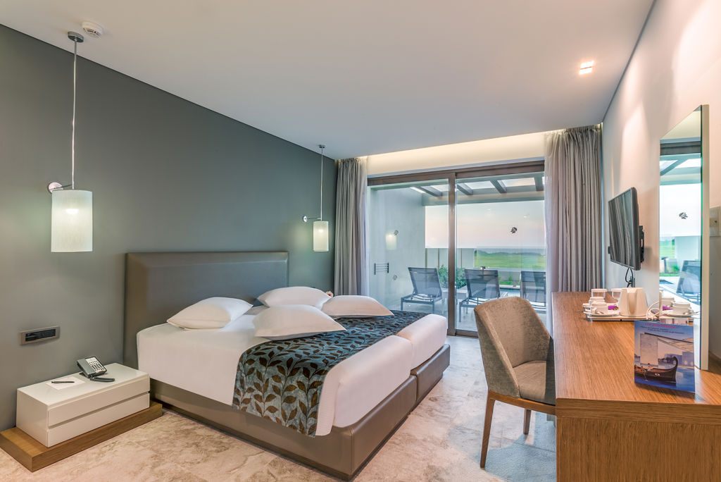 28 m² * Telefoon* * Airconditioning * Televisie * Minibar (tegen betaling o.b.v. Halfpension) * Kluisje * Koffie-/theezetfaciliteiten * Wifi * Douche in bad * Toilet * Föhn * Badjas en slippers * Balkon of terras met zitje * Tegen een meerprijs boekbaar met zeezicht of direct toegang tot gedeeld zwembad *Tegen betaling * Familiekamer (2-4 personen) * Ca. 38 m² * Dezelfde faciliteiten als de Standaardkamer * Bestaat uit een woon-/slaapkamer met slaapbank en een aparte slaapkamer * Executivekamer bubbelbad (2-3 personen) * Dezelfde faciliteiten als de Standaardkamer * Only Adult kamer: minimale leeftijd is 18 jaar * Extra uitgerust met een bubbelbad op het terras * Executive Suite 1 slaapkamer (2-5 personen) * Ca. 48-50 m² * Voorzien van dezelfde faciliteiten als de Standaardkamer * Bestaat uit een woon-/slaapkamer en een aparte slaapkamer * Executive Suite 2 slaapkamers (3-6 personen) * Ca.
