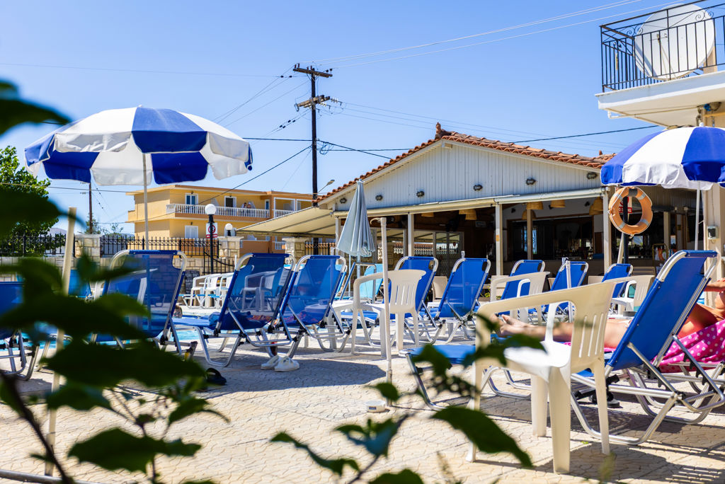 * Ligging * Gelegen een drukke weg * Openbaar strand op circa 2,5 kilometer * Centrum van Agrilia op circa 450 meter * Centrum van Laganas op circa 2 kilometer * Dichtstbijzijnde winkel op circa 300 meter * Dichtstbijzijnde restaurant op circa 600 meter * Algemeen & faciliteiten * 4 gebouwen * Maximaal 2 verdiepingen * 38 kamers * Receptie * Geen liften * Bagageruimte * Wifi in alle openbare ruimtes * Doktersservice tegen betaling * Openbare parkeergelegenheid * Restaurants & bars * Snackbar * Activiteiten & ontspanning * Biljart tegen betaling * Darts * Tafeltennis tegen betaling * Spafaciliteiten * Massages op afspraak tegen betaling * Schoonheidsbehandelingen op afspraak tegen betaling * Zwembaden * Buitenzwembad * Buitenzwembad voor kinderen * Zonneterras * Ligbedden * Parasol * Kinderfaciliteiten * Buitenspeeltuin * Babybedje als preferentie toe te voegen in het boekingsformulier * Verzorging * LogiesHotelkamers * Studio Standaard SZ * Oppervlakte circa 25 m² * Airconditioning tegen betaling * Kluisje * Televisie * Kitchenette * 2-pits kooktoestel * Broodrooster * Waterkoker * Koelkast * Badkamer bad of douche, toilet en föhn * Wifi * Balkon of terras (zitje).