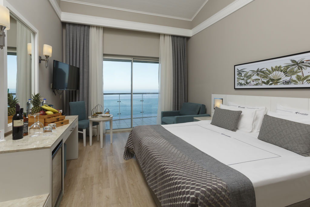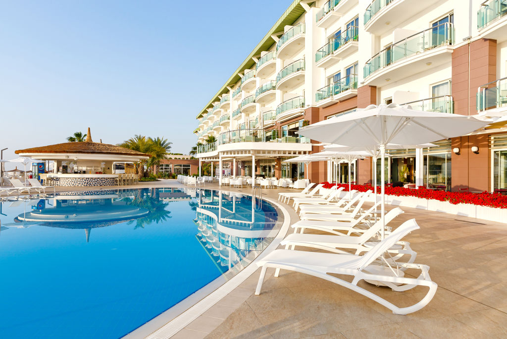 25 kilometer van het centrum van Antalya * Ca. 10 kilometer van het centrum van Kemer Faciliteiten * 2 gebouwen met maximaal 4 verdiepingen * 2 liften, niet in elk gebouw is een lift aanwezig * 360 kamers * 24-uursreceptie * Bagageruimte * Lobby * Wifi * Roomservice* * Winkeltje en minimarkt* * Doktersservice* * Wasservice* * Kapper* * Privé parkeerterrein * Tegen betaling Restaurants & bars * 1 buffetrestaurant * Food Court (à-la-carte service) * 2 à-la-carterestaurants (6 dagen per week geopend, tegen betaling en vooraf reserveren. Restaurant Pier geopend van 15-05 t/m 15-10) * 5 bars; lobby-, court-, service-, pool- en pierbar * Discotheek Hotelkamers * Standaardkamer landzicht (1-3 personen) * Ca. 24-27 m² * Telefoon* * Airconditioning * Televisie * Minibar (wordt elke dag opnieuw aangevuld) * Kluisje * Wifi * Koffie-/theezetfaciliteiten (wordt elke twee dagen aangevuld) * Inloop douche * Toilet * Föhn * Badjas * Slippers * Balkon of terras met zitje * Tegen een meerprijs te boeken met zeezicht * Tegen betaling * Superiorkamer zeezicht (2-4 personen) * Ca.