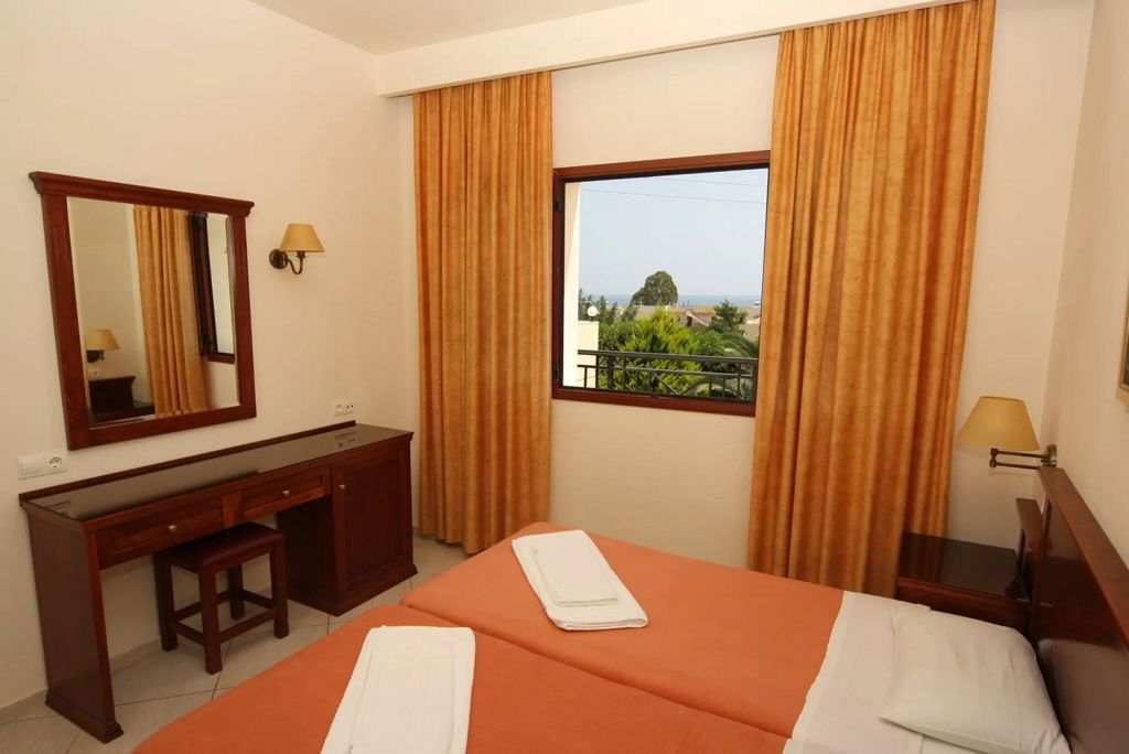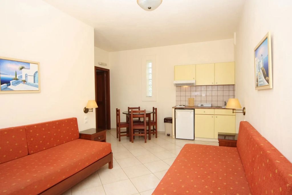 30 m² * Kitchenette * Koffie- en theefaciliteiten * Koelkast * Dezelfde faciliteiten als de standaardkamer * Tegen een meerprijs boekbaar als Superior Studio (2 personen) * 2-kamerappartement (1-4 personen) * Ca. 45 m² * Aparte woonruimte en aparte slaapkamer * Kitchenette met kookplaat en koffiezetapparaat * Dezelfde faciliteiten als de standaardkamer Activiteiten & ontspanning * Biljart* * Golf* * Duiken* * Snorkelen* * Paardrijden* * Massages* *Tegen betaling Verzorging Zomer: Maria Lambis Apartments * Verblijf o.b.v. Logies * Tegen een meerprijs verblijf je o.b.v. Logies & Ontbijt: Ontbijt in buffetvorm.