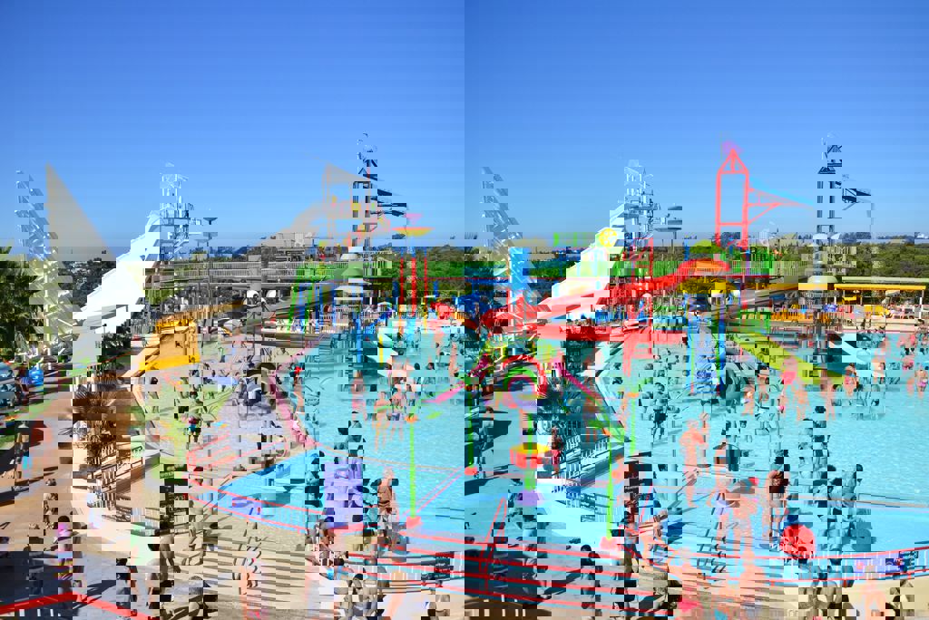 en max. 3 volw. + 2 kind.) * Ca. 44 m² * Bestaat uit 2 ruimtes * Dezelfde faciliteiten als de standaardkamer Sport & Ontspanning * Fitness * Biljart* * Tafeltennis (met borg) * Minigolf (met borg) * Gameroom* * Binnenzwembad * Bubbelbad * Massages* *Tegen betaling Kinderfaciliteiten * 1 kinderbad met glijbaantje * Speeltuintje * Babysitservice op aanvraag en tegen betaling Zwembaden & Strand * 1 buitenzwembad * 1 binnenzwembad * Zonneterras met gratis ligbedden en parasols * Badhanddoekenservice met borg Verzorging Zomer: Aquashow Park * Verblijf o.b.v.