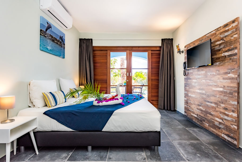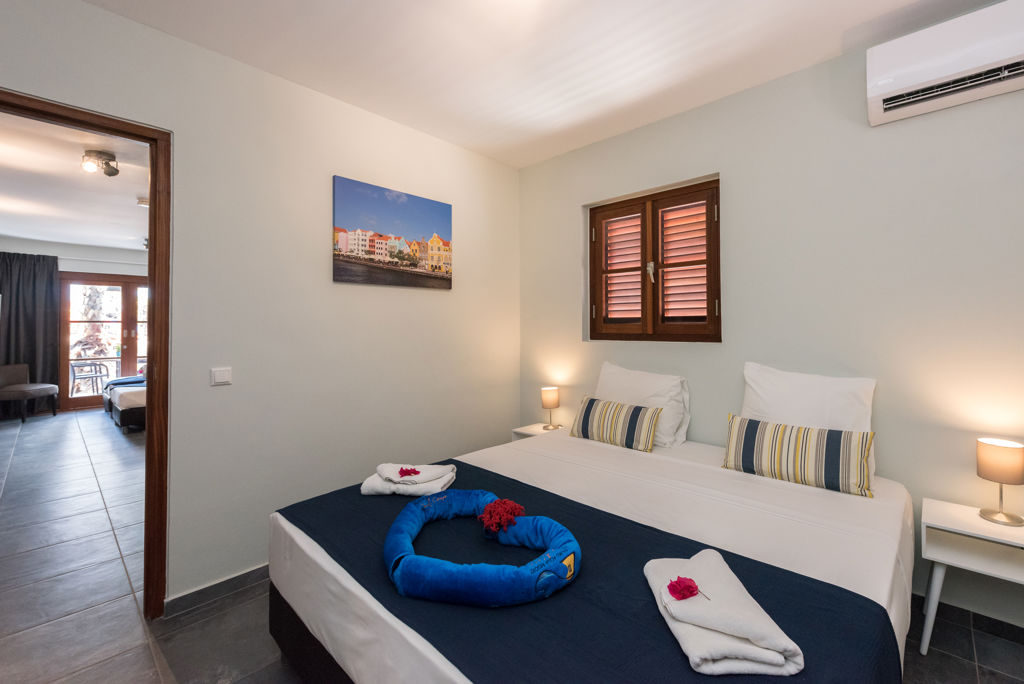 wisselen) Hotelkamers * Standaardkamer (1-2 personen) * Ca. 24 m² * Telefoon* * Airconditioning * Televisie * Minibar (navulling tegen betaling) * Koffiezetapparaat (navulling tegen betaling) * Eenmalig aankomstpakket met water, bier, koffie en thee * Kluisje * Wifi * Inloopdouche * Toilet * Föhn * Ruim balkon of terras met tuinmeubilair *Tegen betaling * Familiekamer (maximaal 4 volwassenen) * Ca. 32 m² * Slaapkamer met airconditioning * Woonkamer met slaapbank 1 of 2 personen of extra bed(den) en een aparte slaapkamer * Dezelfde faciliteiten als de Standaardkamer * 4-kamerappartement (4-6 personen + 1 baby) * Ca. 68 m²) * Volledig ingerichte woonkamer met televisie * Compleet ingerichte open keuken met koelkast met vriesgedeelte, oven, magnetron, 4 kookplaten, koffie-/theezetfacilteiten en tosti-ijzer * 3 slaapkamers met airconditioning * 2 badkamers met douche, toilet en föhn * Balkon met zitje Let op: Borg van € 100 verplicht bij verblijf in standaard- of familiekamer.