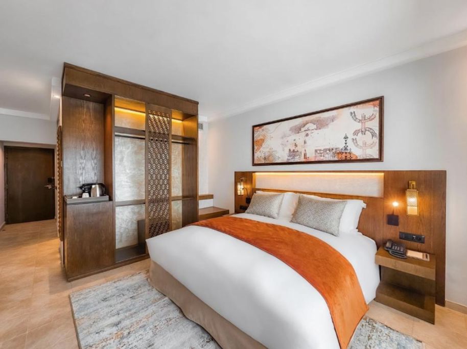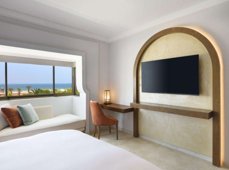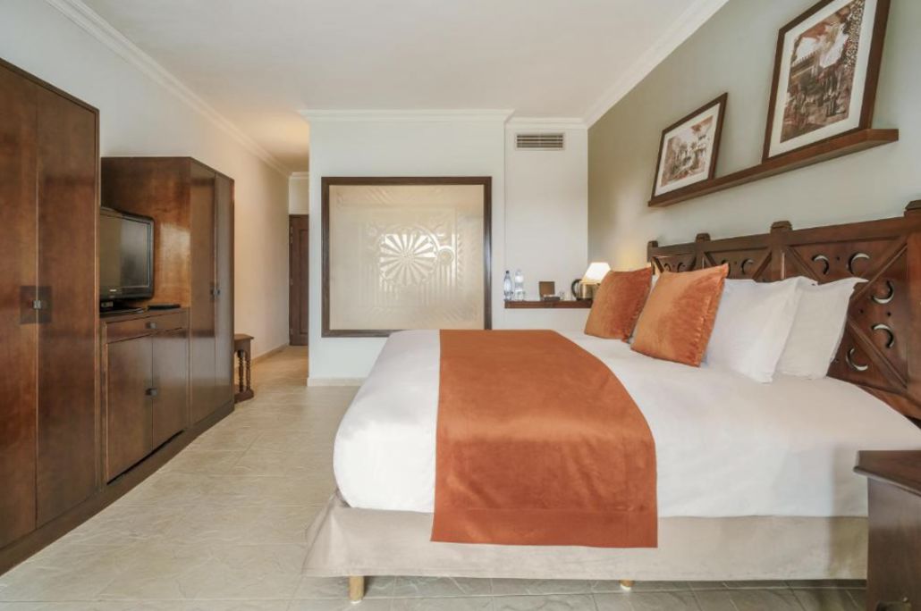 32 m² * Dezelfde faciliteiten als de Standaardkamer * Nespresso apparaatli> * Premium beddengoed * Tegen een meerprijs boekbaar met zeezicht Activiteiten & ontspanning * Fitness * Aerobics * Beachvolleybal * Volleybal * Boccia * Darts * Biljart* * Tafeltennis * Tennis* * Gameroom* * Duikcenter* * Watersporten aan het strand* * Hamam* * Sauna* * Bubbelbad* * Massages en behandelingen* * Meerdere keren per week entertainment * Meerdere keren per week shows en live muziek *Tegen betaling Kinderfaciliteiten * 1 kinderzwembad (verwarmd in de winterperiode) * Miniclub 6 dagen per week (4-7 jaar) * Midiclub 6 dagen per week (8-12 jaar) * Speeltuin * Minidisco * Babybedjes (op aanvraag en op basis van beschikbaarheid) Verzorging Winter: Sofitel Agadir Royal Bay * Verblijf o.b.v. Logies & Ontbijt: ontbijt in buffetvorm * Tegen een meerprijs verblijf je o.b.v. Halfpension: Ontbijt in buffetvorm en diner in buffetvorm * Tegen een meerprijs verblijf je o.b.v. Volpension: Ontbijt, lunch en diner in buffetvorm.