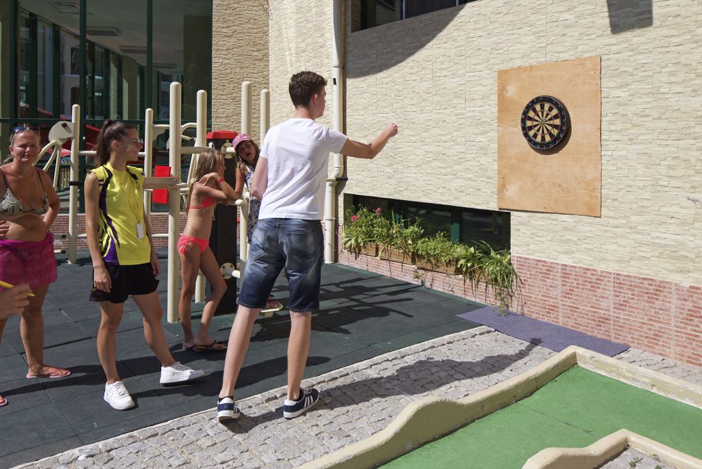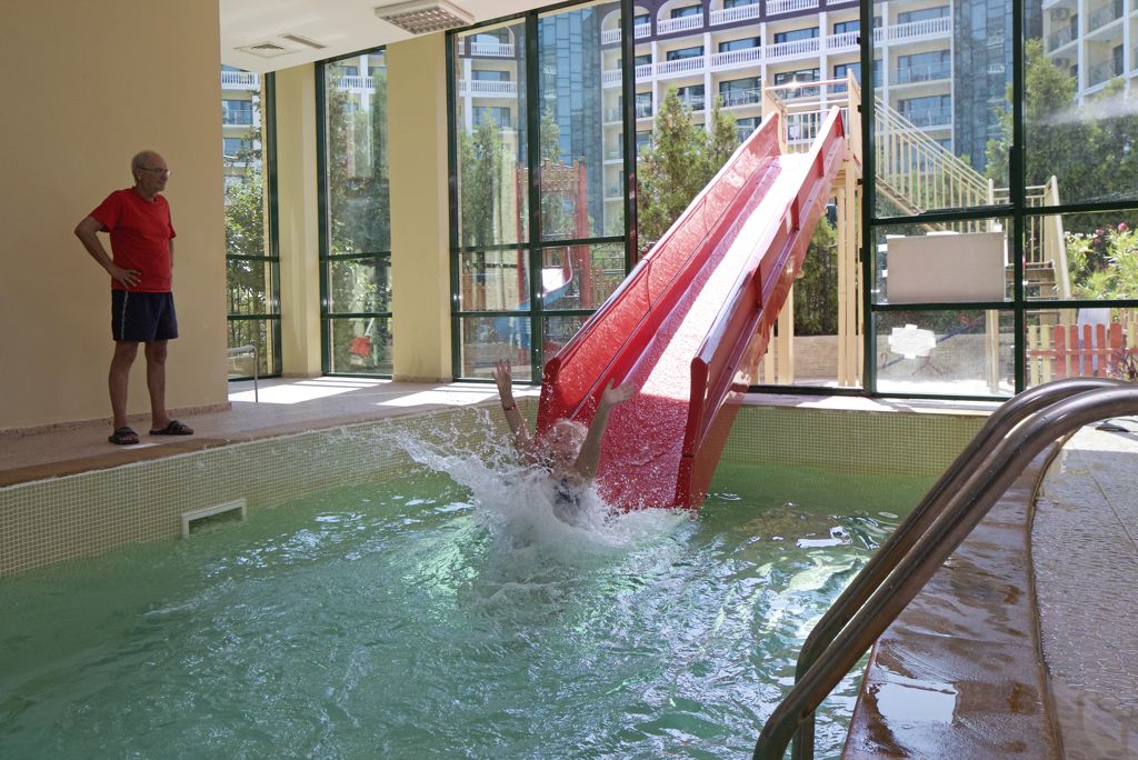 * Ligging * Openbaar strand op circa 250 meter * Zandstrand * Lunapark op circa 200 meter * Aquapark op circa 3 kilometer * Sunny Beach op circa 400 meter * Nesebar op circa 3,5 kilometer * Shuttleservice naar Aquapark gratis * Bushalte op circa 300 meter * Algemeen & faciliteiten * 2 gebouwen * Maximaal 6 verdiepingen * 210 kamers * Receptie * 24 uur per dag * Lobby * 4 liften * Lift in elk gebouw * Bagageruimte * Wifi in alle openbare ruimtes * Doktersservice tegen betaling * op aanvraag * Privé parkeergelegenheid tegen betaling * Restaurants & bars * Buffetrestaurant * 3 drinkgelegenheden * Bar * Lobbybar * Poolbar * Activiteiten & ontspanning * Biljart tegen betaling * Darts * Fitness * Midgetgolf * Spafaciliteiten * Sauna tegen betaling * Massages tegen betaling * Shows * 3 keer per week * Livemuziek * 6 keer per week * Zwembaden * Buitenzwembad * Buitenzwembad voor kinderen * Binnenzwembad * Glijbaan * Zonneterras * Ligbedden met matrasjes * Parasol * Kinderfaciliteiten * Mini club (4-12 jaar) * Minidisco * Buitenspeeltuin * Babybedje als preferentie toe te voegen in het boekingsformulier * Verzorging * All Inclusive * Ontbijt in buffetvorm (07.30-10.00 uur) * Lunch in buffetvorm (12.30-14.00 uur) * Diner in buffetvorm (18.30-20.30 uur) * Snacks (15.30-17.30 uur) * Koffie, thee & koekjes (07.30-20.30 uur) * IJs (15.30-17.30 uur) * Selectie lokale (non-)alcoholische drankjes (10.00-22.00 uur)Hotelkamers * 2-persoonskamer Standaard DZ * Oppervlakte tussen 21 en 25 m² * Airconditioning * Kluisje * Televisie * Telefoon tegen betaling * Eet- en drinkfaciliteiten * Koelkast * Badkamer douche, toilet en föhn * Balkon of terras (zitje) * 2-persoonskamer Standaard Zwembadzicht DZP * Oppervlakte tussen 21 en 25 m² * Zwembadzicht * Airconditioning * Kluisje * Televisie * Telefoon tegen betaling * Eet- en drinkfaciliteiten * Koelkast * Badkamer douche, toilet en föhn * Balkon of terras (zitje) * 2-persoonskamer Deluxe DD * Oppervlakte tussen 31 en 35 m² * Airconditioning * Kluisje * Televisie * Telefoon tegen betaling * Eet- en drinkfaciliteiten * Koelkast * Badkamer douche, toilet en föhn * Balkon of terras (zitje) * 2-persoonskamer Large DL * Oppervlakte tussen 26 en 30 m² * Airconditioning * Kluisje * Televisie * Telefoon tegen betaling * Eet- en drinkfaciliteiten * Koelkast * Badkamer douche, toilet en föhn * Balkon of terras (zitje).