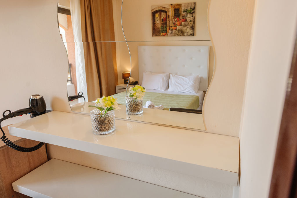 * Ligging * Gelegen op een heuvel * Openbaar strand op circa 400 meter * Zandstrand * Kiezelstrand * Centrum van Dassia op circa 300 meter * Dichtstbijzijnde winkel op circa 100 meter * Dichtstbijzijnde restaurant op circa 100 meter * Dichtstbijzijnde bar op circa 100 meter * Corfu op circa 12 kilometer * Bushalte op circa 50 meter * Algemeen & faciliteiten * 4 gebouwen * Maximaal 2 verdiepingen * 42 kamers * Receptie * 24 uur per dag * Lobby * Lift * Niet in elk gebouw een lift * Bagageruimte * Wifi in alle openbare ruimtes * Tuin * Privé parkeergelegenheid * Restaurants & bars * Buffetrestaurant * 2 drinkgelegenheden * Lobbybar * Poolbar * Zwembaden * Buitenzwembad * Buitenzwembad voor kinderen * Zonneterras * Ligbedden met matrasjes * Parasol * Badhanddoekenservice * Kinderfaciliteiten * Babybedje als preferentie toe te voegen in het boekingsformulier * Verzorging * Logies & Ontbijt * Ontbijt in buffetvormHotelkamers * 2-persoonskamer Standaard Tuinzicht DZG * Oppervlakte van circa 17 m² * Tuinzicht * Airconditioning tegen betaling * Kluisje * Televisie * Telefoon tegen betaling * Eet- en drinkfaciliteiten * Mini koelkast * Badkamer douche, toilet en föhn * Wifi * Balkon of terras (zitje) * 2-persoonskamer Standaard Zeezicht DZM * Oppervlakte van circa 17 m² * Zeezicht * Airconditioning tegen betaling * Kluisje * Televisie * Telefoon tegen betaling * Eet- en drinkfaciliteiten * Mini koelkast * Badkamer douche, toilet en föhn * Wifi * Balkon of terras (zitje) * 2-persoonskamer Superior Zeezicht DSM * Oppervlakte van circa 21 m² * Zeezicht * Airconditioning * Kluisje * Televisie * Telefoon tegen betaling * Eet- en drinkfaciliteiten * Mini koelkast * Badkamer douche, toilet en föhn * Wifi * Balkon of terras (zitje).