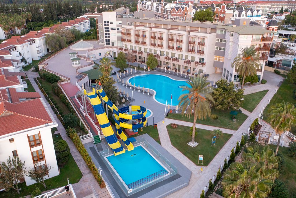 * Ligging * Gelegen aan het privéstrand * Kiezelstrand * Ligbedden * Parasol * Cabana's tegen betaling * Centrum van Kemer op circa 900 meter * Dichtstbijzijnde winkel op circa 900 meter * Dichtstbijzijnde restaurant op circa 900 meter * Dichtstbijzijnde bar op circa 900 meter * Bushalte op circa 900 meter * Taxistandplaats op circa 100 meter * Algemeen & faciliteiten * Gedeeltelijk gerenoveerd in 2026 * 25 gebouwen * Maximaal 5 verdiepingen * 371 kamers * Receptie * 24 uur per dag * Lobby * 3 liften * Niet in elk gebouw een lift * Bagageruimte * Wifi in alle openbare ruimtes * Meerdere winkels * Wasservice tegen betaling * Doktersservice tegen betaling * op aanvraag * Tuin * Privé parkeergelegenheid * Restaurants & bars * Buffetrestaurant * 3 à-la-carterestaurants (vooraf reserveren) * Grillrestaurant * Restaurant met verschillende specialiteiten * Visrestaurant * Roomservice tegen betaling * Bistro * 6 drinkgelegenheden * 3 bars * Discobar * Lobbybar * Poolbar * Activiteiten & ontspanning * Basketbal * Beachvolleybal * Darts * Fitness * Gymnastiek * Tafeltennis * Tennis tegen betaling * Watersporten tegen betaling * Spa Center * Sauna * Hamam behandelingen tegen betaling * Massages tegen betaling * Schoonheidsbehandelingen tegen betaling * Animatie voor volwassenen * 6 keer per week * Shows * 6 keer per week * Livemuziek * Meerdere keren per week * Zwembaden * 2 buitenzwembaden * Relaxbad * Buitenzwembad voor kinderen * Zonneterras * Ligbedden * Parasol * Badhanddoekenservice * Kinderfaciliteiten * Mini club (4-12 jaar) * 7 keer per week * Minidisco * Binnenspeeltuin * Buitenspeeltuin * Babybedje als preferentie toe te voegen in het boekingsformulier * Babysitservice tegen betaling * ter plaatse op aanvraag * Verzorging * Ultra All Inclusive * Ontbijt in buffetvorm (07.00-10.00 uur) * Laat ontbijt in buffetvorm (10.00-11.00 uur) * Lunch in buffetvorm (12.30-14.30 uur) * Diner in buffetvorm (18.30-21.00 uur) * Dineren in alle à-la-carterestaurants 1 keer per verblijf bij een verblijf van minimaal 7 nachten * Snacks (24 uur per dag) * Koffie, thee & koekjes (10.00-00.00 uur) * Middernachtsnack (23.00-23.30 uur) * Selectie geïmporteerde drankjes * Selectie lokale (non-)alcoholische drankjes (24 uur per dag) * Tegen betaling: import drankjes, verse vruchtensappen en roomserviceHotelkamers * 2-persoonskamer Standaard DZ * Oppervlakte van circa 27 m² * Airconditioning * Kluisje * Televisie * Telefoon tegen betaling * Eet- en drinkfaciliteiten * Koffie- en theefaciliteiten * Koffiecupmachine * Minibar * Dagelijks aangevuld met water, frisdrank en bier * Badkamer inloopdouche, toiletartikelen, toilet en föhn * Wifi * Balkon (zitje) * 2-persoonskamer Club DC * Oppervlakte van circa 22 m² * In een bijgebouw * Airconditioning * Kluisje * Televisie * Telefoon tegen betaling * Eet- en drinkfaciliteiten * Koffie- en theefaciliteiten * Koffiecupmachine * Minibar * Dagelijks aangevuld met water, frisdrank en bier * Badkamer inloopdouche, toiletartikelen, toilet en föhn * Wifi * Balkon (zitje) * 2-persoonskamer Superior DS * Oppervlakte van circa 30 m² * Eén grote kamer * Airconditioning * Kluisje * Televisie * Telefoon tegen betaling * Eet- en drinkfaciliteiten * Koffie- en theefaciliteiten * Koffiecupmachine * Minibar * Dagelijks aangevuld met water, frisdrank en bier * Badkamer inloopdouche, toiletartikelen, toilet en föhn * Wifi * Balkon (zitje) * 2-persoonskamer Terras DT * Oppervlakte van circa 27 m² * Airconditioning * Kluisje * Televisie * Telefoon tegen betaling * Eet- en drinkfaciliteiten * Koffie- en theefaciliteiten * Koffiecupmachine * Minibar * Dagelijks aangevuld met water, frisdrank en bier * Badkamer inloopdouche, toiletartikelen, bidet en toilet * Wifi * Balkon (zitje) * Familiekamer Standaard FZ * Oppervlakte van circa 49 m² * 2 slaapkamers * Airconditioning * Kluisje * Televisie * Telefoon tegen betaling * Eet- en drinkfaciliteiten * Koffie- en theefaciliteiten * Koffiecupmachine * Minibar * Dagelijks aangevuld met water, frisdrank en bier * Badkamer inloopdouche, toiletartikelen, toilet en föhn * Wifi * Balkon (zitje) * Familiekamer Club FC * Oppervlakte van circa 31 m² * In een bijgebouw * 2 slaapkamers * Airconditioning * Kluisje * Televisie * Telefoon tegen betaling * Eet- en drinkfaciliteiten * Koffie- en theefaciliteiten * Koffiecupmachine * Minibar * Dagelijks aangevuld met water, frisdrank en bier * Badkamer inloopdouche, toiletartikelen, toilet en föhn * Wifi * Balkon (zitje).