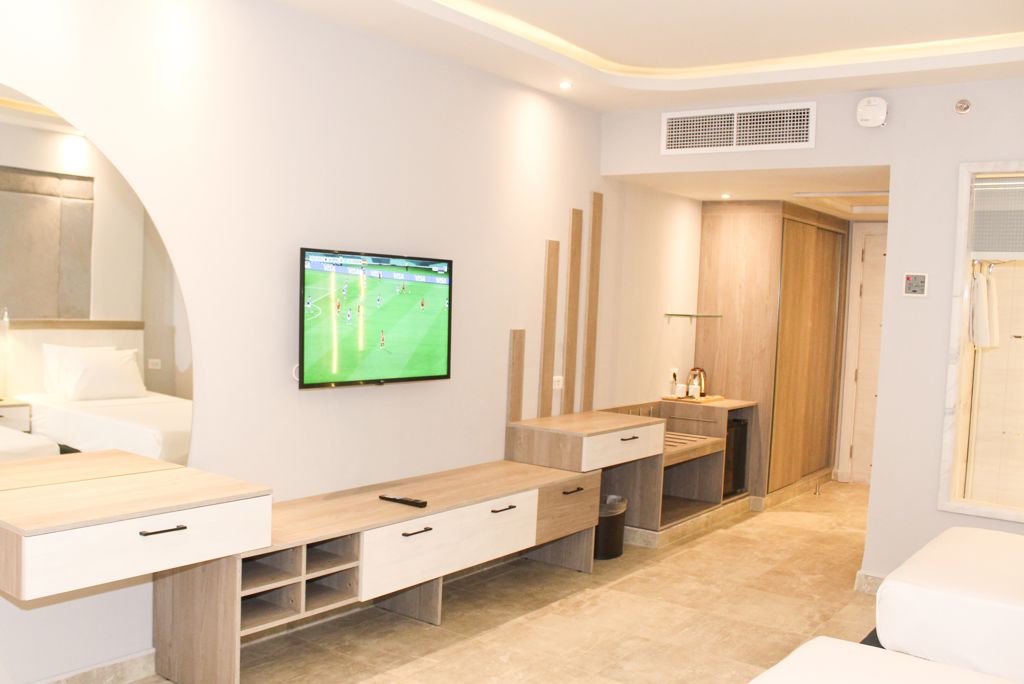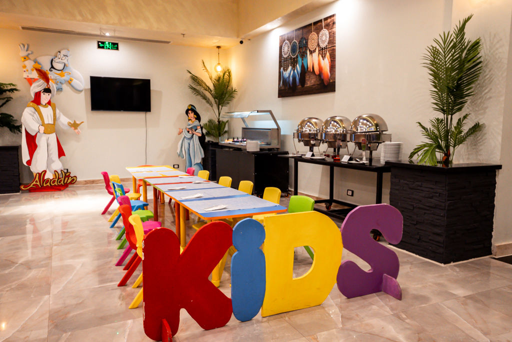 november en maart * Zonneterras * Ligbedden met matrasjes * Parasol * Badhanddoekenservice * Kinderfaciliteiten * Mini club (4-12 jaar) * 7 keer per week * Minidisco * 7 keer per week * Buitenspeeltuin * Babybedje op aanvraag via ons contact center * Verzorging * All Inclusive * Ontbijt in buffetvorm (07.00-10.00 uur) * Continentaal ontbijt (10.00-11.00 uur) * Lunch in buffetvorm (12.30-14.30 uur) * Diner in buffetvorm (18.30-22.00 uur) * Dineren in alle à-la-carterestaurants 1 keer per verblijf * Koffie, thee & koekjes (16.00-17.00 uur) * IJs (16.00-17.00 uur) * Selectie lokale (non-)alcoholische drankjes (09.00-00.30 uur) * Tegen betaling: drankjes in flessen, verse vruchtensappen en shishaHotelkamers * 2-persoonskamer Standaard DZ * Oppervlakte tussen 30 en 35 m² * Tuinzicht * Airconditioning * Kluisje * Televisie * Telefoon tegen betaling * Eet- en drinkfaciliteiten * Koffie- en theefaciliteiten * Minibar * Gevuld met water * Badkamer met douche, toilet en föhn * Wifi * Terras (zitje) * 2-persoonskamer Deluxe DD * Oppervlakte tussen 33 en 36 m² * Tuinzicht * Airconditioning * Kluisje * Televisie * Telefoon tegen betaling * Eet- en drinkfaciliteiten * Koffie- en theefaciliteiten * Minibar * Gevuld met water * Badkamer met douche, toilet en föhn * Wifi * Balkon of terras (zitje) * Familiekamer Suite Deluxe FUD * Oppervlakte van circa 45 m² * Tuinzicht * 2 slaapkamers * Airconditioning * Kluisje * Televisie * Telefoon tegen betaling * Eet- en drinkfaciliteiten * Koffie- en theefaciliteiten * Minibar * Gevuld met water * Badkamer met douche, toilet, föhn en badslippers * Wifi * Balkon of terras (zitje) * Junior suite Deluxe JD * Oppervlakte van circa 40 m² * Tuinzicht * Airconditioning * Kluisje * Televisie * Telefoon tegen betaling * Eet- en drinkfaciliteiten * Koffie- en theefaciliteiten * Minibar * Gevuld met water * Badkamer met douche, toilet, föhn en badslippers * Wifi * Terras (zitje).