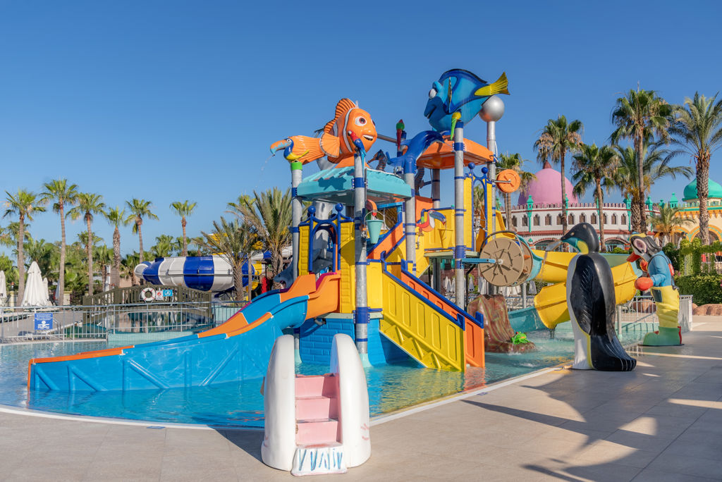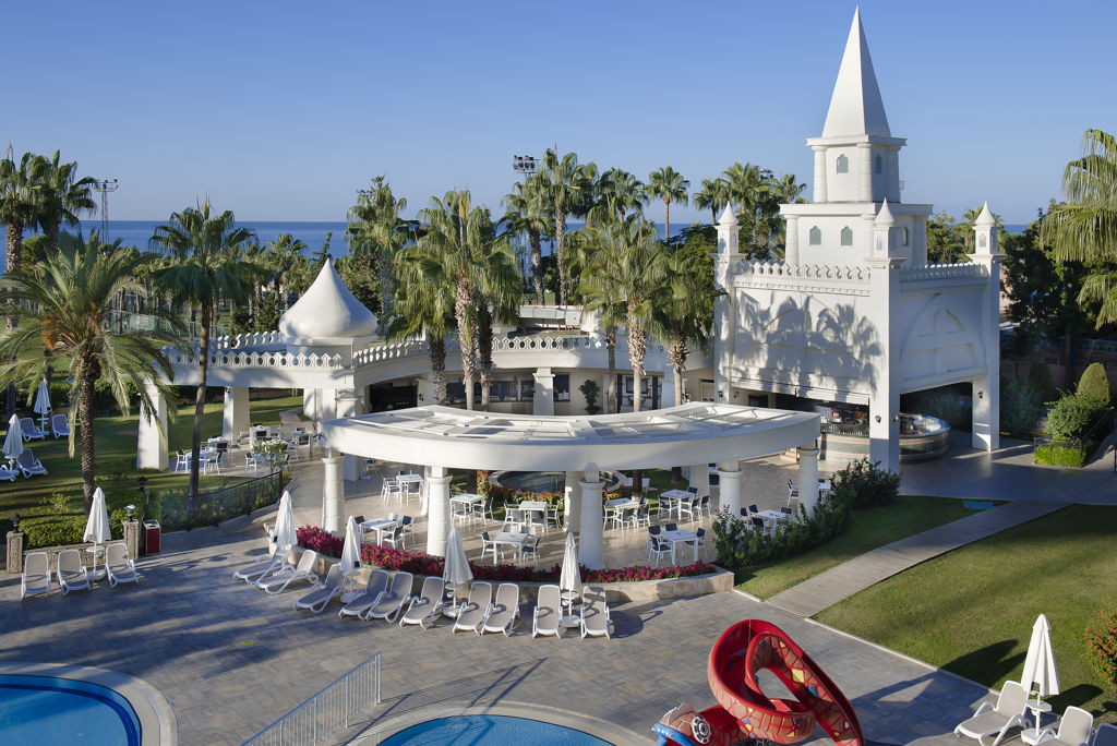 * Ligging * Oude centrum Side op circa 5 kilometer * Gelegen aan het privéstrand * Zandstrand * Ligbedden met matrasjes * Parasol * Dichtstbijzijnde winkel op circa 500 meter * Dichtstbijzijnde restaurant op circa 500 meter * Dichtstbijzijnde bar op circa 500 meter * Manavgat op circa 12 kilometer * Bushalte op circa 500 meter * Algemeen & faciliteiten * 45 gebouwen * Maximaal 3 verdiepingen * 584 kamers * Receptie * 24 uur per dag * Geen liften * Bagageruimte * Wifi in alle openbare ruimtes * Meerdere winkels * Minimarkt * Wasservice tegen betaling * Doktersservice tegen betaling * Tuin * Openbare parkeergelegenheid * Privé parkeergelegenheid * Restaurants & bars * Buffetrestaurant * 7 à-la-carterestaurants (vooraf reserveren) * Chinees restaurant tegen bijbetaling * Frans restaurant tegen bijbetaling * Italiaans restaurant tegen bijbetaling * Mexicaans restaurant tegen bijbetaling * Restaurant met verschillende specialiteiten tegen bijbetaling * Turks restaurant Eén keer verblijf gratis dineren in dit óf een ander geselecteerd à-la-carterestaurant * Visrestaurant tegen bijbetaling * 17 drinkgelegenheden * 2 bars * 2 beachbars * Cocktailbar * 2 discobars * 4 koffiecorners * 2 lobbybars * Lounge bar * 3 poolbars * Terrace bar * Activiteiten & ontspanning * Aerobics * Aquagym * Basketbal * Beachvolleybal * Biljart tegen betaling * Boccia * Bowling tegen betaling * Darts * Fitness * Kangoo jumping tegen betaling * Midgetgolf * Ochtendgymnastiek * Tafeltennis * Tennis * Voetbal * Watersporten tegen betaling * Yoga * Spafaciliteiten * Sauna * Turks stoombad * Bubbelbad binnen tegen betaling * Massages tegen betaling * Schoonheidsbehandelingen tegen betaling * Karaoke- * Gameroom toegang tegen betaling * Animatie * Animatie voor kinderen * Shows * Livemuziek- * Zwembaden * 4 buitenzwembaden * 3 buitenzwembaden voor kinderen * Eén van deze zwembaden heeft een glijbaan * Aquapark * Open tussen ca. woensdag 1 april 2026 en donderdag 5 november 2026 afhankelijk van weersomstandigheden * 14 glijbanen * De glijbanen hebben verschillende openingsperiodes * Zonneterras * Ligbedden met matrasjes * Parasol * Badhanddoekenservice * Kinderfaciliteiten * Mini club (4-12 jaar) * 7 keer per week * Teenage club (13-17 jaar) * Open in het zomerseizoen tussen ca.