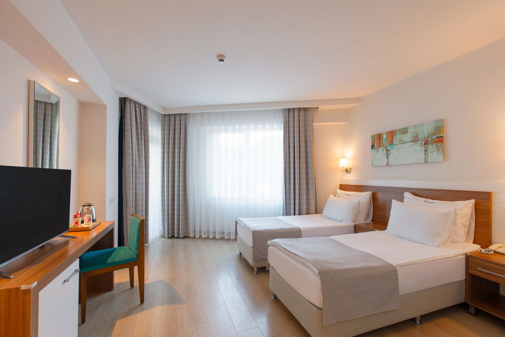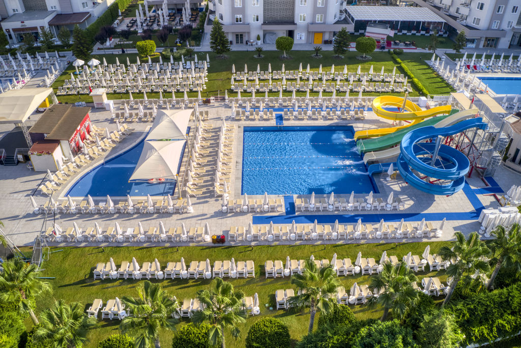 april en oktober * Livemuziek * Zwembaden * 2 buitenzwembaden * Eén van deze zwembaden is gesloten in het winterseizoen * Eén van deze zwembaden is verwarmd tussen ca. zaterdag 1 november 2025 en dinsdag 31 maart 2026 * Aquapark * Gesloten in het winterseizoen tussen ca. zaterdag 7 maart 2026 en dinsdag 31 maart 2026 * Miniumleeftijd van toepassing * 4 glijbanen * De glijbanen hebben verschillende openingsperiodes * Zonneterras * Ligbedden met matrasjes * Parasol * Badhanddoekenservice * Kinderfaciliteiten * Mini club (4-12 jaar) * 7 keer per week * Minidisco * Buitenspeeltuin * Babybedje als preferentie toe te voegen in het boekingsformulier * Babysitservice tegen betaling * ter plaatse op aanvraag * Verzorging * Ultra All Inclusive * Ontbijt in buffetvorm (07.00-10.00 uur) * Laat ontbijt in buffetvorm (10.00-11.00 uur) * Lunch in buffetvorm (12.30-14.00 uur) * Diner in buffetvorm (18.30-21.00 uur) * Snacks (11.00-16.00 uur) (24 uur per dag) * Koffie, thee & koekjes (11.00-17.00 uur) * IJs (14.00-16.00 uur) * Middernachtsnack (23.00-00.00 uur) * Selectie lokale (non-)alcoholische drankjes (10.00-00.00 uur) * Tegen betaling: dineren in het à-la-carterestaurant, drankjes in flessen, import drankjes, verse vruchtensappen en roomservice * Goed om te weten * Duurzaamheidslabel(s): Green Star Hotel en GSTC LabelHotelkamers * 2-persoonskamer Standaard Hier kan een vrije tekst op kamerniveau worden ingevoerd. Attribuut 85 in het CMS.