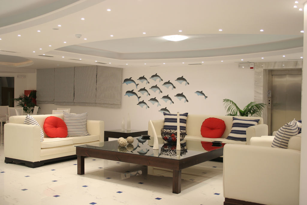 * Ligging * Openbaar strand Gerakas op circa 1 kilometer * Zandstrand * Dichtstbijzijnde winkel op circa 250 meter * Dichtstbijzijnde restaurant op circa 200 meter * Argasi op circa 13 kilometer * Vassilikos op circa 1,5 kilometer * Bushalte op circa 50 meter * Algemeen & faciliteiten * 3 gebouwen * Maximaal 2 verdiepingen * 82 kamers * Lobby * Lift * Bagageruimte * Wifi in alle openbare ruimtes * Tuin * Privé parkeergelegenheid * Restaurants & bars * Buffetrestaurant * Snackbar * Activiteiten & ontspanning * Squash * Tafeltennis * Tennis tegen betaling * Spa Center * Sauna tegen betaling * Hamam tegen betaling * Bubbelbad binnen * Massages tegen betaling * Fitnessruimte * Livemuziek * Eén keer per week * Zwembaden * Buitenzwembad * Zoetwater * Buitenzwembad voor kinderen * Zoetwater * Zonneterras * Ligbedden gratis * Parasol gratis * Verzorging * All InclusiveHotelkamers * 2-persoonskamer Comfort DJ * 2-persoonskamer Superior Zeezicht DSM * Oppervlakte van circa 22 m² * Zeezicht * Airconditioning * Kluisje * Televisie * Telefoon tegen betaling * Eet- en drinkfaciliteiten * Koffie- en theefaciliteiten * Minibar * Badkamer met bad of douche, toilet en badjassen * Wifi * Balkon of terras (zitje) * Suite (Harmony) U1 * Suite (Serenity) U2 * 2-kamerappartement Maisonnette 2AM.