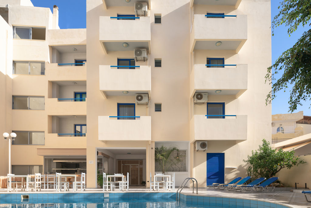 * Ligging * In het centrum van Cherssonissos * Openbaar strand Star Beach op circa 1 kilometer * Zandstrand * Kiezelstrand * Ligbedden tegen betaling * Parasol tegen betaling * Dichtstbijzijnde winkel op circa 150 meter * Dichtstbijzijnde restaurant op circa 150 meter * Dichtstbijzijnde bar op circa 150 meter * Bushalte op circa 150 meter * Taxistandplaats op circa 150 meter * Algemeen & faciliteiten * 2 gebouwen * Maximaal 4 verdiepingen * 90 kamers * Receptie * 24 uur per dag * Lobby * 2 liften * Bagageruimte * Wifi in alle openbare ruimtes * Wasservice tegen betaling * Doktersservice tegen betaling * Tuin * Openbare parkeergelegenheid * Restaurants & bars * Buffetrestaurant * Drinkgelegenheid * Lobbybar * Activiteiten & ontspanning * Biljart tegen betaling * Zwembaden * Buitenzwembad * Zoetwater * Zonneterras * Ligbedden * Parasol * Badhanddoekenservice tegen betaling en met borg * Kinderfaciliteiten * Babybedje op aanvraag via ons contact center * Verzorging * Logies & Ontbijt * Ontbijt in buffetvorm (07.30-10.30 uur) * Halfpension * Ontbijt in buffetvorm (07.30-10.30 uur) * Diner in buffetvorm (19.00-21.00 uur)Hotelkamers * 2-persoonskamer Standaard DZ * Oppervlakte circa 20 m² * Landzicht * Straatzijde * Airconditioning * Kluisje tegen betaling * Televisie * Radio * Telefoon tegen betaling * Eet- en drinkfaciliteiten * Mini koelkast * Strijkijzer * Badkamer douche, toilet en föhn * Wifi * Balkon of terras (zitje) * 2-persoonskamer Superior DS * Oppervlakte circa 18 m² * Gerenoveerd * Landzicht * Straatzijde * Airconditioning * Kluisje tegen betaling * Televisie * Radio * Telefoon tegen betaling * Eet- en drinkfaciliteiten * Mini koelkast * Strijkijzer * Badkamer douche, toilet en föhn * Wifi * Balkon of terras (zitje).