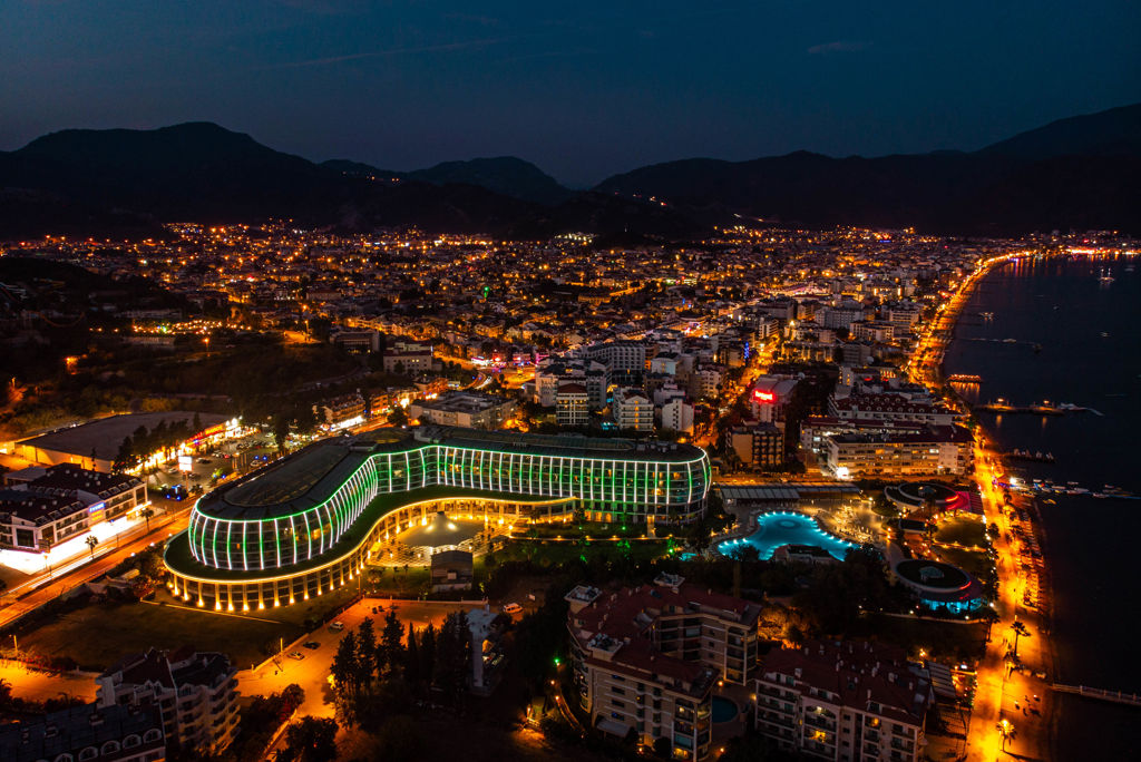 * Ligging * Gelegen aan het privéstrand * Zandstrand * Ligbedden met matrasjes * Parasol * Centrum van Marmaris op circa 2 kilometer * Dichtstbijzijnde winkel op circa 50 meter * Dichtstbijzijnde restaurant op circa 50 meter * Bushalte (op loopafstand) * Algemeen & faciliteiten * Kindvriendelijk complex * Modern ingericht * 1 gebouw * Maximaal 8 verdiepingen * 624 kamers * Receptie * 24 uur per dag * Lobby met zitgedeelte * 10 liften * Bagageruimte * Wifi in alle openbare ruimtes * Meerdere winkels * Minimarkt * Wasservice tegen betaling * Doktersservice tegen betaling * op aanvraag * Tuin * Openbare parkeergelegenheid * Privé parkeergelegenheid * Restaurants & bars * Buffetrestaurant * 4 à-la-carterestaurants (vooraf reserveren) * Snackrestaurant * Roomservice tegen betaling * 5 drinkgelegenheden * 5 bars * Activiteiten & ontspanning * Aerobics * Biljart tegen betaling * Boccia * Boogschieten * Darts * Duikcentrum tegen betaling * Fitness * Tafeltennis * Volleybal * Watersporten tegen betaling * Yoga tegen betaling * Spa Center * Binnenzwembad * Sauna * Hamam * Bubbelbad binnen tegen betaling * Massages tegen betaling * Schoonheidsbehandelingen tegen betaling * Animatie- * Zwembaden * 2 buitenzwembaden * Bij één van deze zwembaden geldt een minimumleeftijd van 16 jaar * Eén van deze zwembaden heeft een glijbaan * Buitenzwembad voor kinderen * Zonneterras * Ligbedden met matrasjes * Parasol * Badhanddoekenservice gratis met borg * Kinderfaciliteiten * Mini club (4-12 jaar) * Minidisco * Buitenspeeltuin * Babybedje als preferentie toe te voegen in het boekingsformulier * Verzorging * All Inclusive * Ontbijt in buffetvorm (07.00-10.00 uur) * Laat ontbijt in buffetvorm (10.00-13.30 uur) * Lunch in buffetvorm (12.00-13.00 uur) * Diner in buffetvorm (19.00-21.00 uur) * Snacks (12.00-16.00 uur) * Koffie, thee & koekjes (12.00-18.00 uur) * IJs (12.00-18.00 uur) * Middernachtsnack (23.00-00.00 uur) * Selectie lokale (non-)alcoholische drankjes (10.00-00.00 uur) * Tegen betaling: import drankjes, verse vruchtensappen en roomserviceHotelkamers * 2-persoonskamer Standaard Landzicht DZL * Oppervlakte tussen 28 en 32 m² * Landzicht * Airconditioning * Kluisje * Televisie * Telefoon tegen betaling * Eet- en drinkfaciliteiten * Koffie- en theefaciliteiten * Minibar * Dagelijks aangevuld met water en frisdrank * Badkamer douche, toilet, föhn en badslippers * Wifi * Balkon (zitje) * 2-persoonskamer Standaard Zijzeezicht DZI * Oppervlakte tussen 28 en 32 m² * Zijzeezicht * Airconditioning * Kluisje * Televisie * Telefoon tegen betaling * Eet- en drinkfaciliteiten * Koffie- en theefaciliteiten * Minibar * Dagelijks aangevuld met water en frisdrank * Badkamer douche, toilet, föhn en badslippers * Wifi * Balkon (zitje) * 2-persoonskamer Standaard Zeezicht DZM * Oppervlakte tussen 28 en 32 m² * Zeezicht * Airconditioning * Kluisje * Televisie * Telefoon tegen betaling * Eet- en drinkfaciliteiten * Koffie- en theefaciliteiten * Minibar * Dagelijks aangevuld met water en frisdrank * Badkamer douche, toilet, föhn en badslippers * Wifi * Balkon (zitje) * Familiekamer Standaard FZ * Oppervlakte circa 64 m² * Zijzeezicht * Twee standaardkamers met tussendeur * Airconditioning * Kluisje * Televisie * Telefoon tegen betaling * Eet- en drinkfaciliteiten * Koffie- en theefaciliteiten * Minibar * Dagelijks aangevuld met water en frisdrank * Badkamer douche, toilet, föhn en badslippers * Wifi * Balkon (zitje).