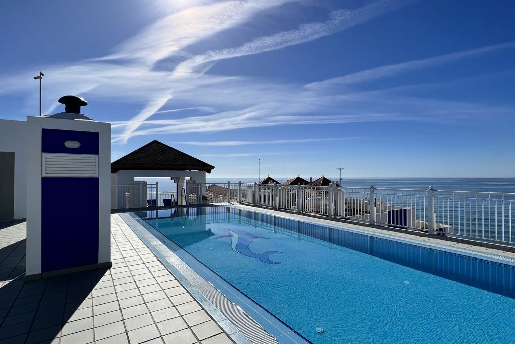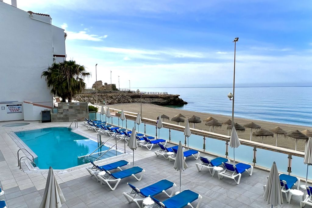 Kort | Een prachtig breed zandstrand, een fijn zwembad met uitzicht op zee en een perfecte ligging vlak bij het centrum van Nerja. Dat kan niets anders betekenen dan een topvakantie in het 4-sterren Perla Marina Hotel! |