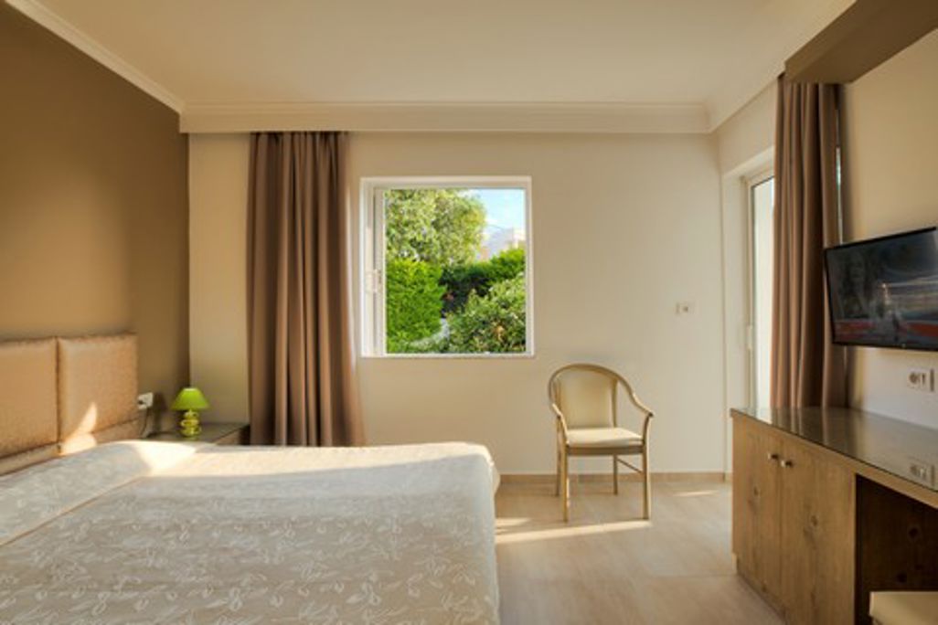 In de badkamer treft u een bad of douche, toilet en föhn. Alle kamers hebben een balkon of terras met uitzicht op zee, zwembad, tuin of bergen. Verblijft u liever in een studio? Dat is bij Alexandra Beach Aparthotel mogelijk! De studio's (1-2 personen) beschikken over een kitchenette met koelkast, waterkoker en koffiezetapparaat. Ook een telefoon, radio, televisie, en airconditioning zijn te vinden in de studio.