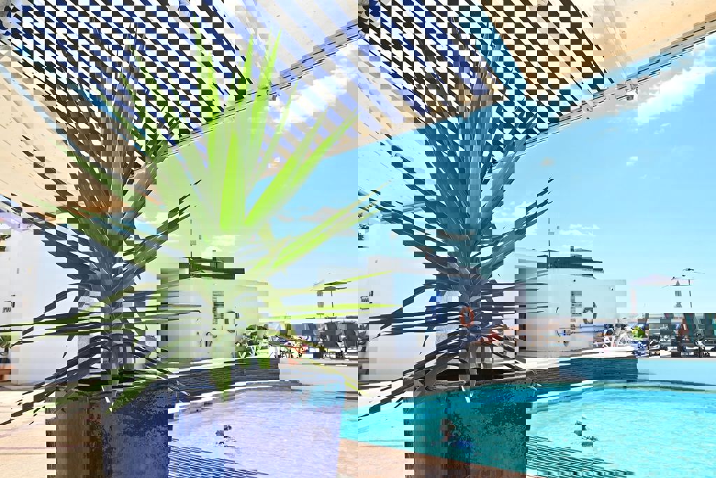 450 meter van het openbare zandstrand Praia do Peneco * Centrum van Albufeira op ca. 2 kilometer * Dichtstbijzijnde winkel, restaurant en bar op ca. 500 meter * Bushalte op ca. 250 meter Faciliteiten * Only Adult hotel; minimum leeftijd van de gasten is 16 jaar * Meerdere gebouwen met maximaal 5 verdiepingen * Meerdere liften * 84 kamers * Receptie * Lobby * Bagageruimte * Wifi * Roomservice * Wasservice* op aanvraag * Doktersservice* op aanvraag * Privé parkeergelegenheid* *Tegen betaling Restaurants & bars * 1 restaurant * 2 bars Zwembaden * 1 buitenzwembad * Zonneterras * Ligbedden en parasols gratis (zwembad) Hotelkamers * Standaardkamer (1-2 personen) * Ca.