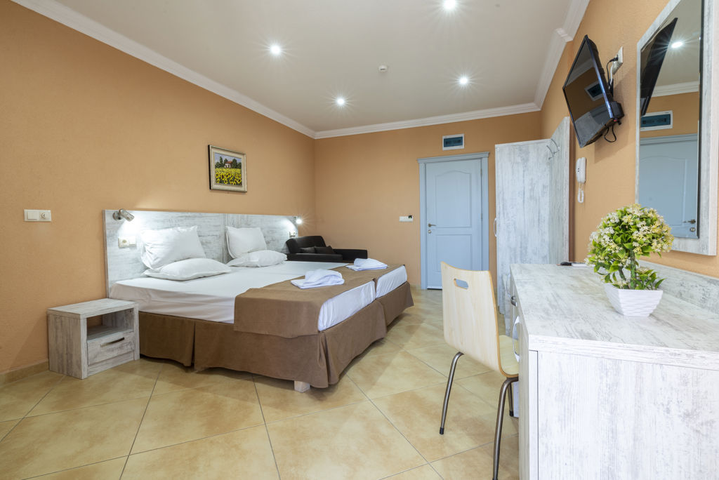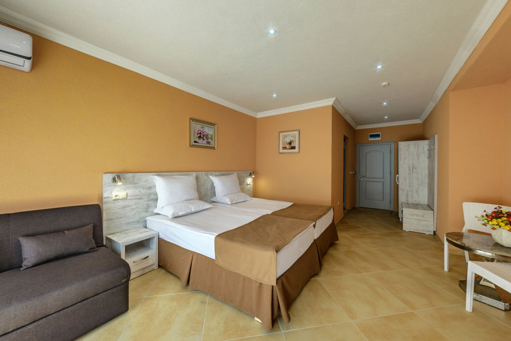 * Ligging * Openbaar strand op circa 120 meter * Ligbedden tegen betaling * Parasol tegen betaling * Centrum op circa 1,5 kilometer * Dichtstbijzijnde winkel op circa 100 meter * Dichtstbijzijnde restaurant op circa 100 meter * Dichtstbijzijnde bar op circa 100 meter * Nessebar op circa 6 kilometer * Bushalte op circa 2 kilometer * Algemeen & faciliteiten * 3 gebouwen * Maximaal 6 verdiepingen * 264 kamers * Receptie * 24 uur per dag * Lobby * 4 liften * Lift in elk gebouw * Bagageruimte * Wifi in één van de openbare ruimtes * Tuin * Openbare parkeergelegenheid tegen betaling * Privé parkeergelegenheid tegen betaling * Restaurants & bars * Buffetrestaurant * 3 drinkgelegenheden * 2 bars * Lobbybar * Activiteiten & ontspanning * Aerobics * Darts * Yoga * Spafaciliteiten * Bubbelbad buiten * Animatie * 6 keer per week * Shows * Eén keer per week in het hoogseizoen * Zwembaden * 3 buitenzwembaden * Eén van deze zwembaden is een zoutwaterbad * Eén van deze zwembaden is verwarmd tussen ca. mei en september * Buitenzwembad voor kinderen * 1 glijbanen * Zonneterras * Ligbedden * Parasol * Badhanddoekenservice gratis met borg * Kinderfaciliteiten * Minidisco * Buitenspeeltuin * Babybedje tegen betaling * Verzorging * All Inclusive * Ontbijt in buffetvorm (07.30-10.00 uur) * Lunch in buffetvorm (12.00-14.00 uur) * Diner in buffetvorm (18.00-21.00 uur) * Snacks (11.00-17.00 uur) * Koffie, thee & koekjes (07.30-23.00 uur) * IJs (14.30-17.00 uur) * Selectie non-alcoholische drankjes (07.30-23.00 uur) * Selectie alcoholische drankjes (07.30-23.00 uur)Hotelkamers * 2-persoonskamer Voordeel DE * Speciaal tarief * Oppervlakte van circa 18 m² * Airconditioning * Televisie * Telefoon tegen betaling * Eet- en drinkfaciliteiten * Mini koelkast * Badkamer douche, toilet en föhn * Wifi * Balkon (zitje) * 2-persoonskamer Superior DS * Oppervlakte van circa 25 m² * Airconditioning * Televisie * Telefoon tegen betaling * Eet- en drinkfaciliteiten * Koffie- en theefaciliteiten * Mini koelkast * Badkamer douche, toilet en föhn * Wifi * Balkon (zitje) * 2-persoonskamer Superior DS1 * Oppervlakte van circa 27 m² * Airconditioning * Televisie * Telefoon tegen betaling * Eet- en drinkfaciliteiten * Koffie- en theefaciliteiten * Mini koelkast * Badkamer douche, toilet en föhn * Wifi * Balkon (zitje).