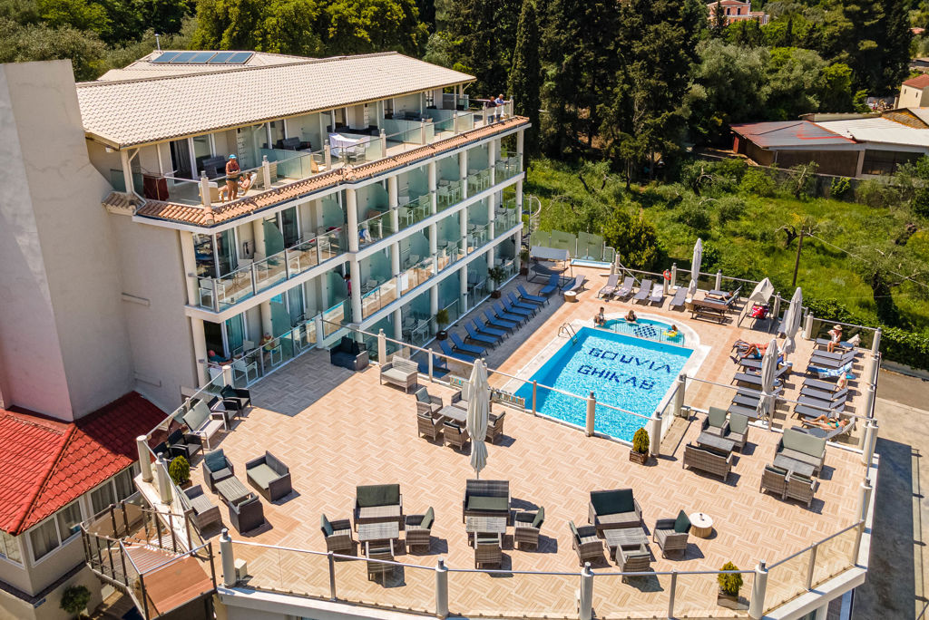* Ligging * Rustige ligging * Openbaar strand op circa 250 meter * Centrum van Gouvia op circa 500 meter * Dichtstbijzijnde winkel op circa 500 meter * Dichtstbijzijnde restaurant op circa 500 meter * Dichtstbijzijnde bar op circa 500 meter * Venetian Shipyard op circa 1 kilometer * Corfu-Stad op circa 7 kilometer * Bushalte op circa 200 meter * Algemeen & faciliteiten * 3 gebouwen * Maximaal 3 verdiepingen * 67 kamers * Receptie * 24 uur per dag * Inchecken vanaf 15.00 uur * Uitchecken tot 11.00 uur * Laat uitchecken, ter plaatse aanvragen en op basis van beschikbaarheid tegen betaling * Lift * Niet in elk gebouw een lift * Bagageruimte * Wifi in alle openbare ruimtes * Doktersservice tegen betaling * op aanvraag * Privé parkeergelegenheid * Restaurants & bars * Snackrestaurant tegen betaling * Drinkgelegenheid * Poolbar * Activiteiten & ontspanning * Fitness * Zwembaden * 4 buitenzwembaden * Verwarmd tussen ca. vrijdag 1 mei 2026 en vrijdag 30 oktober 2026 * Apart kindergedeelte in 2 buitenzwembaden * Zonneterras * Ligbedden met matrasjes * Parasol * Badhanddoekenservice gratis met borg * Kinderfaciliteiten * Babybedje als preferentie toe te voegen in het boekingsformulier gratis * Verzorging * LogiesHotelkamers * 2-persoonskamer Comfort DJ * Oppervlakte tussen 20 en 25 m² * Airconditioning tegen betaling * Kluisje tegen betaling * Televisie * Kitchenette * Meerdere-pits kooktoestel * Magnetron * Oven * Broodrooster * Koelkast * Badkamer douche, toilet en föhn * Wifi * Balkon (zitje) * 2-persoonskamer Comfort (Panoramic View) DJ1 * Oppervlakte tussen 20 en 25 m² * Panoramisch uitzicht * Airconditioning tegen betaling * Kluisje tegen betaling * Televisie * Kitchenette * Meerdere-pits kooktoestel * Magnetron * Oven * Broodrooster * Koelkast * Badkamer douche, toilet en föhn * Wifi * Balkon of terras (zitje) * 2-persoonskamer Comfort Voordeel DJE * Speciaal tarief * Locatie, formaat, uitzicht en/of faciliteiten kunnen afwijken ten opzichte van andere kamertypes * Oppervlakte tussen 17 en 22 m² * Geen uitzicht * Airconditioning tegen betaling * Kluisje tegen betaling * Televisie * Kitchenette * Meerdere-pits kooktoestel * Magnetron * Oven * Broodrooster * Koelkast * Badkamer bad of douche, toilet en föhn * Wifi * Balkon of terras (zitje) * 2-persoonskamer Comfort Swimup DJZ * Oppervlakte tussen 20 en 25 m² * Zwembadzicht * Airconditioning tegen betaling * Kluisje tegen betaling * Televisie * Kitchenette * Meerdere-pits kooktoestel * Magnetron * Oven * Broodrooster * Koelkast * Badkamer douche, toilet en föhn * Wifi * Balkon of terras (zitje) * Gemakkelijke toegang tot het gedeelde zwembad * 2-persoonskamer Large (Comfort by the Pool) DL * Oppervlakte tussen 25 en 30 m² * Zwembadzicht * Airconditioning tegen betaling * Kluisje tegen betaling * Televisie * Kitchenette * Meerdere-pits kooktoestel * Magnetron * Oven * Broodrooster * Koelkast * Badkamer douche, toilet en föhn * Wifi * Balkon of terras (zitje) * Familiekamer Comfort FJ * Oppervlakte tussen 25 en 30 m² * Zwembadzicht * Airconditioning tegen betaling * Kluisje tegen betaling * Televisie * Kitchenette * Meerdere-pits kooktoestel * Magnetron * Oven * Broodrooster * Koelkast * Badkamer bad of douche, toilet en föhn * Wifi * Balkon of terras (zitje) * Junior suite Comfort JJ * Oppervlakte tussen 50 en 55 m² * Zwembadzicht * Woonkamer * Meerdere slaapkamers * Airconditioning tegen betaling * Kluisje tegen betaling * Televisie * Kitchenette * Meerdere-pits kooktoestel * Magnetron * Oven * Broodrooster * Koelkast * Badkamer bad of douche, toilet en föhn * Wifi * Balkon of terras (zitje) * 2-kamerappartement 2A * Oppervlakte van circa 50 m² * Beperkt uitzicht * Woonkamer * Eén slaapkamer * Airconditioning tegen betaling * Kluisje tegen betaling * Televisie * Kitchenette * Meerdere-pits kooktoestel * Magnetron * Oven * Broodrooster * Koelkast * Badkamer douche, toilet en föhn * Wifi * Balkon of terras (zitje).