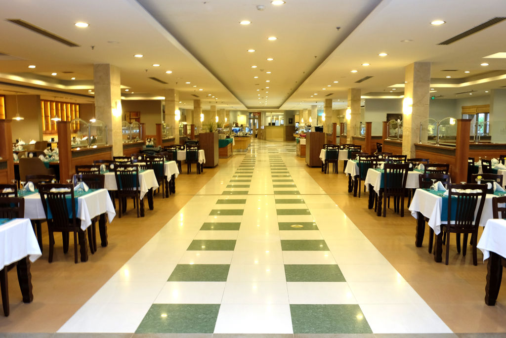 * Ligging * Gelegen aan het privéstrand * Zandstrand * Ligbedden met matrasjes * Parasol * Centrum van Kusadasi op circa 9 kilometer * Dichtstbijzijnde winkel op circa 9 kilometer * Dichtstbijzijnde restaurant op circa 9 kilometer * Dichtstbijzijnde bar op circa 9 kilometer * Bushalte (op loopafstand) * Algemeen & faciliteiten * 9 gebouwen * Maximaal 3 verdiepingen * 489 kamers * Receptie * 24 uur per dag * Lobby * Meerdere liften * Niet in elk gebouw een lift * Bagageruimte * Wifi in alle openbare ruimtes * Internetruimte tegen betaling * 12 winkels * Minimarkt * Wasservice tegen betaling * Doktersservice tegen betaling * Tuin * Openbare parkeergelegenheid * Privé parkeergelegenheid * Restaurants & bars * Buffetrestaurant * Speciaal kinderbuffet * 5 à-la-carterestaurants * 9 drinkgelegenheden * 9 bars * Activiteiten & ontspanning * Aerobics * Basketbal * Beachvolleybal * Biljart tegen betaling * Boccia tegen betaling * Bowling tegen betaling * Darts tegen betaling * Duikcentrum tegen betaling * Fitness * Midgetgolf * Squash * Tafeltennis * Tennis * Voetbal * Watersporten tegen betaling * Yoga * Spafaciliteiten * Sauna * Hamam * Bubbelbad binnen * Massages tegen betaling * Schoonheidsbehandelingen tegen betaling * Gameroom * Animatie * Zwembaden * 3 buitenzwembaden * 3 buitenzwembaden voor kinderen * Eén van deze zwembaden heeft 3 glijbanen * Aquapark * Glijbaan voor volwassenen en kinderen * Binnenzwembad * Binnenzwembad voor kinderen * Zonneterras * Ligbedden met matrasjes * Parasol * Badhanddoekenservice * Kinderfaciliteiten * Mini club (4-12 jaar) * 6 keer per week * Minidisco * Kinderbioscoop * Buitenspeeltuin * Babybedje als preferentie toe te voegen in het boekingsformulier * Buggy tegen betaling en met borg * ter plaatse op aanvraag * Verzorging * Ultra All Inclusive * Ontbijt in buffetvorm (07.00-10.00 uur) * Laat ontbijt in buffetvorm (10.00-11.00 uur) * Lunch in buffetvorm (12.30-14.30 uur) * Diner in buffetvorm (18.30-21.30 uur) * Dineren in één van de à-la-carterestaurants 1 keer per verblijf bij een verblijf van minimaal 7 dagen * Snacks (11.30-16.00 uur) * Koffie, thee & koekjes (16.30-17.30 uur) * IJs (12.30-14.30 uur) * Middernachtsnack (01.00-06.00 uur) * Selectie geïmporteerde drankjes * Selectie lokale (non-)alcoholische drankjes (24 uur per dag) * Tegen betaling: import drankjes en verse vruchtensappen * Goed om te weten * Duurzaamheidslabel(s): GSTC LabelHotelkamers * 2-persoonskamer Voordeel DE * Speciaal tarief * Locatie, formaat, uitzicht en/of faciliteiten kunnen afwijken ten opzichte van andere kamertypes * Oppervlakte circa 25 m² * Airconditioning gratis * Kluisje * Satelliettelevisie * Telefoon tegen betaling * Eet- en drinkfaciliteiten * Koffie- en theefaciliteiten * Minibar tegen betaling * Bij aankomst gevuld * Badkamer inloopdouche, toilet en föhn * Wifi * Balkon (zitje) * 2-persoonskamer Standaard DZ * Oppervlakte circa 25 m² * Tuinzicht * Airconditioning gratis * Kluisje * Satelliettelevisie * Telefoon tegen betaling * Eet- en drinkfaciliteiten * Koffie- en theefaciliteiten * Minibar tegen betaling * Bij aankomst gevuld * Badkamer inloopdouche, toilet en föhn * Wifi * Balkon (zitje) * 2-persoonskamer Superior DS * Oppervlakte circa 35 m² * Airconditioning gratis * Kluisje * Satelliettelevisie * Telefoon tegen betaling * Eet- en drinkfaciliteiten * Koffie- en theefaciliteiten * Minibar tegen betaling * Bij aankomst gevuld * Badkamer douche, toilet en föhn * Wifi * Balkon (zitje) * Familiekamer Standaard FZ * Oppervlakte circa 35 m² * Airconditioning gratis * Kluisje * Satelliettelevisie * Telefoon tegen betaling * Eet- en drinkfaciliteiten * Koffie- en theefaciliteiten * Minibar tegen betaling * Bij aankomst gevuld * Badkamer inloopdouche, toilet en föhn * Wifi * Balkon (zitje) * Familiekamer Superior (Suite) FS1 * Oppervlakte circa 46 m² * 3 slaapkamers * Airconditioning gratis * Kluisje * Satelliettelevisie * Telefoon tegen betaling * Eet- en drinkfaciliteiten * Koffie- en theefaciliteiten * Minibar gratis * Badkamer douche, bad, toilet en föhn * Wifi * Balkon (zitje) * Familiekamer Suite FU * Oppervlakte circa 41 m² * Woon-/slaapkamer * Eén slaapkamer * Airconditioning gratis * Kluisje * Satelliettelevisie * Telefoon tegen betaling * Eet- en drinkfaciliteiten * Koffie- en theefaciliteiten * Minibar tegen betaling * Bij aankomst gevuld * Badkamer douche, toilet en föhn * Wifi * Balkon (zitje).