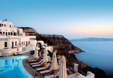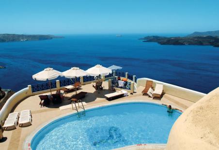 Verblijven in een aangename accommodatie in Fira? Hotel Volcano View Hotel is een luxe 4-sterren hotel, perfect voor een fijne vakantie.