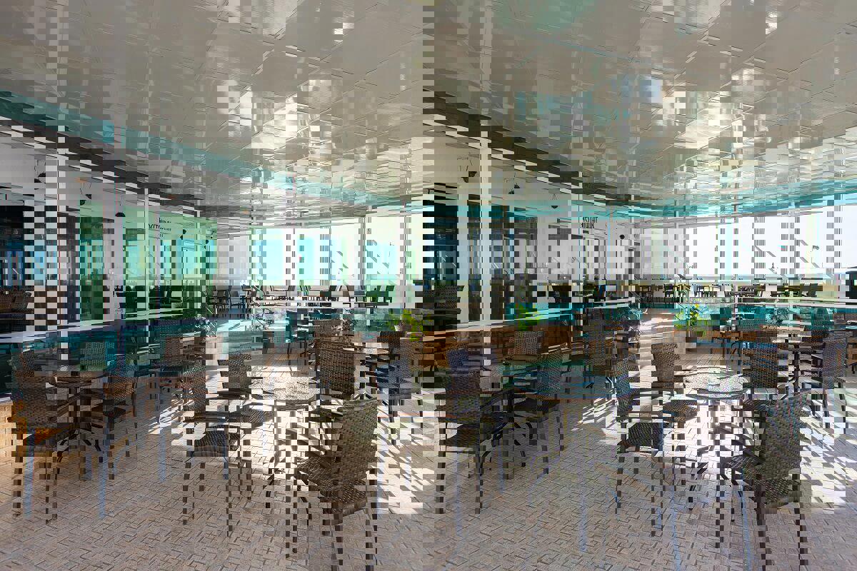 | Faciliteiten | Overdekt zwembad Zwembadbar Wellness Sauna Waterglijbaan Fitnessstudio Massage Volley Kapper Parkeerplaats |