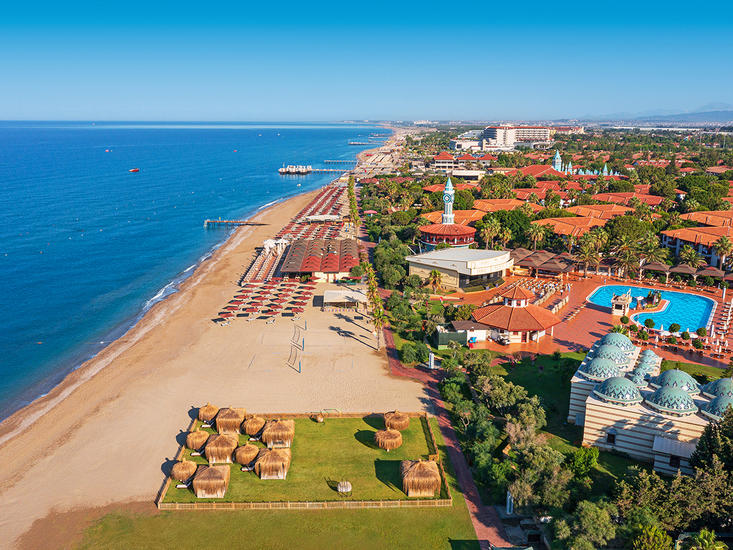 Dit ruime resort is een waar vakantiedorp met een unieke sfeer, geïnspireerd op de Ottomaanse architectuur. Wat direct opvalt? Het enorme aquapark! Met spectaculaire glijbanen, een golfslagbad en een peuterbad met zandbodem beleeft jong én oud hier een spetterende tijd. Ondertussen geniet jij van een drankje bij het strandrestaurant of een panoramisch diner aan zee. Door de brede opzet is het resort verrassend rustig, zelfs met alle actie eromheen.