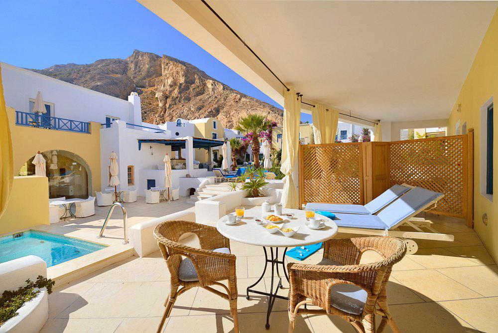 Verblijven in een aangename accommodatie in Kamari? Hotel Tamarix Del Mar Suites is een luxe 5-sterren hotel, perfect voor een fijne vakantie.