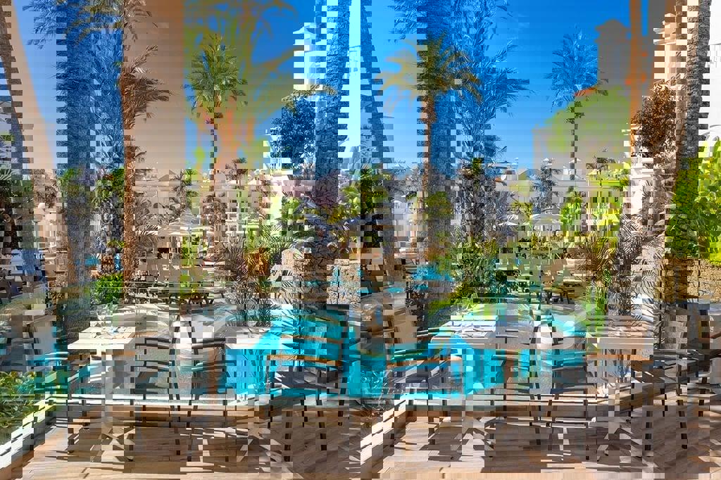 Hier verblijf je direct aan de sfeervolle boulevard en op steenworp afstand van het populaire zandstrand Playa de Fañabé. Het resort is perfect voor rustzoekers, strandliefhebbers en gezinnen die willen genieten van zon, zee en comfort. Met zijn tropische tuin, laguneachtige zwembaden en fijne restaurant, is dit de ideale plek om echt tot rust te komen. De 2 zwembaden slingeren sierlijk door de hele tuin, wat zorgt voor een relaxte en unieke sfeer.