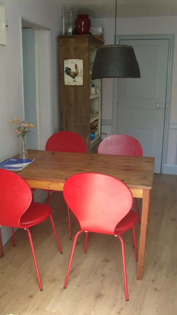Entree op straatniveau, sfeervolle woonkamer (24m2) met ( extra) een tweepersoonsbed hoekbank en een eethoek. Keuken (14m2) met eettafel , moderne apparatuur: oven, keramische kookplaat/etc. Het huis heeft 2 douches, 3 wc`s en een buitendouche.