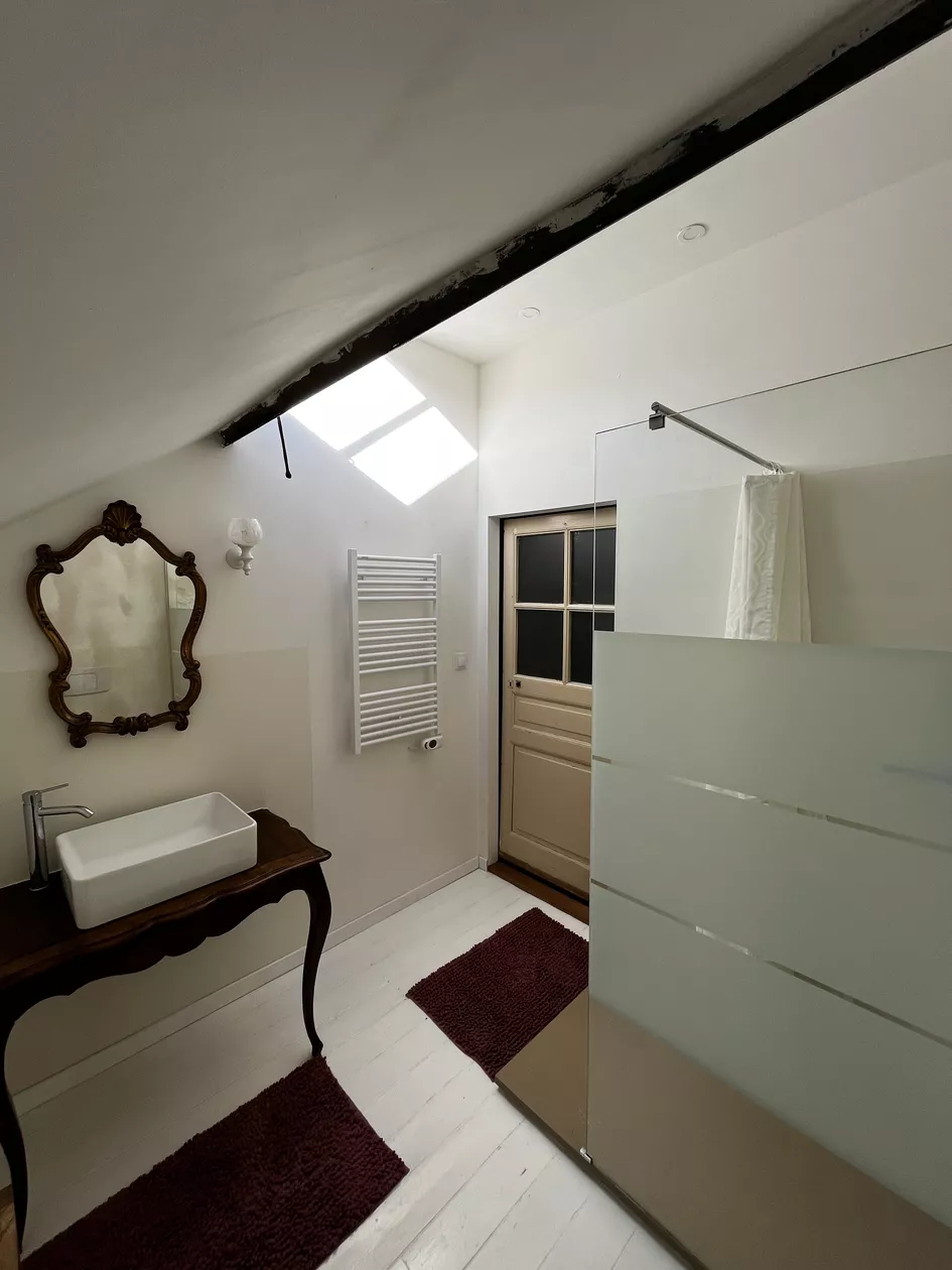 - 2 Moderne badkamers met Italiaanse inloopdouches, waskommen of wastafel.