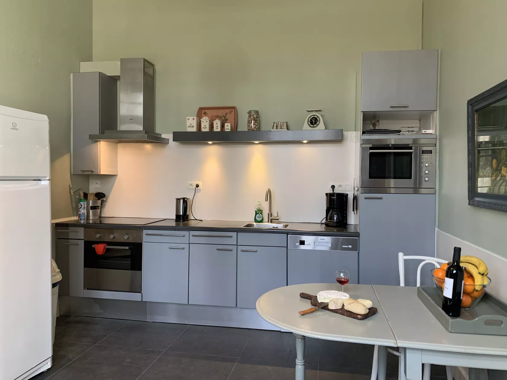 - Zeer ruime, goed uitgeruste keuken met vaatwasmachine, 2 ovens, magnetron, elektrische kookplaat, koel/vriescombinatie.
