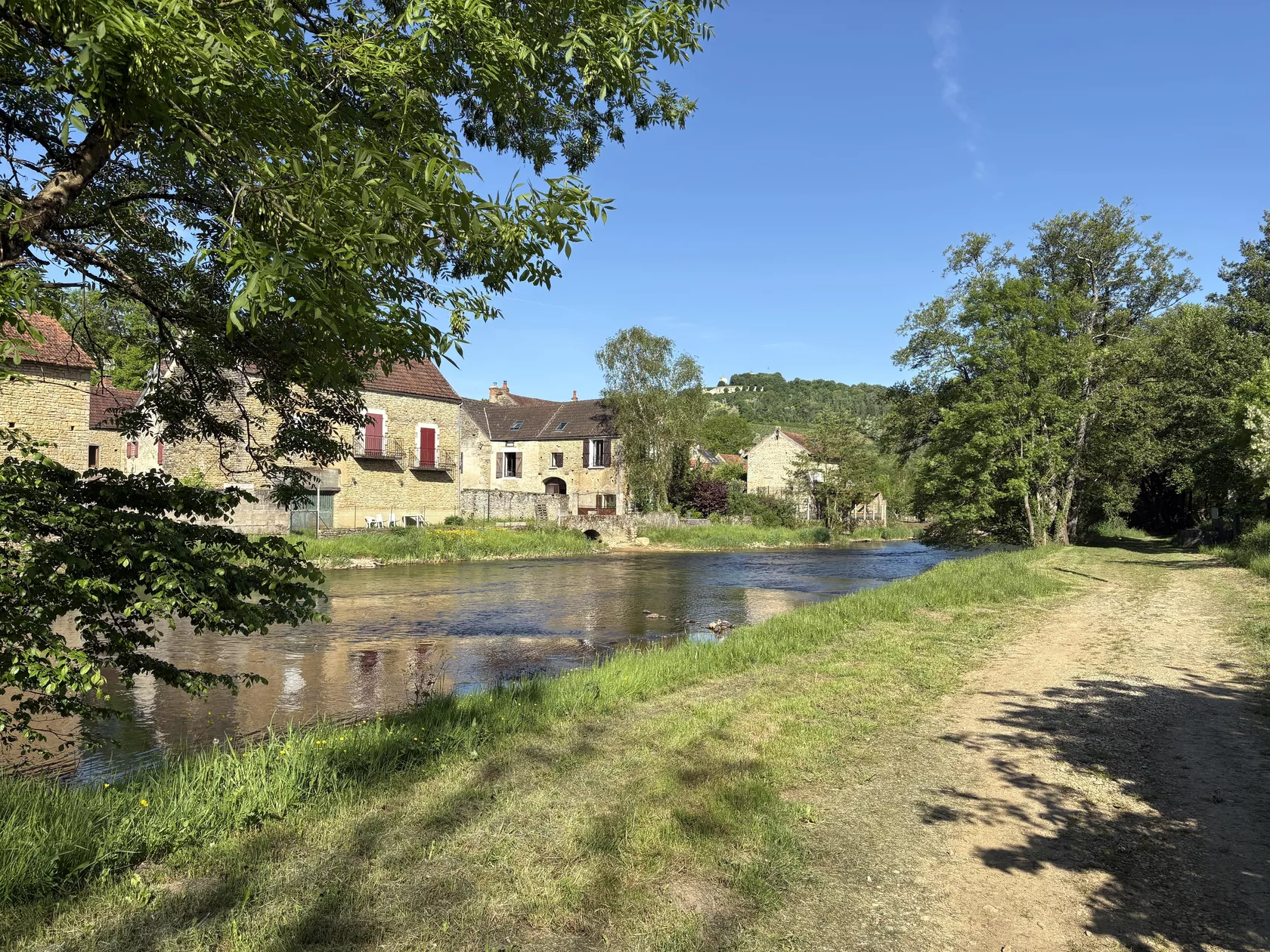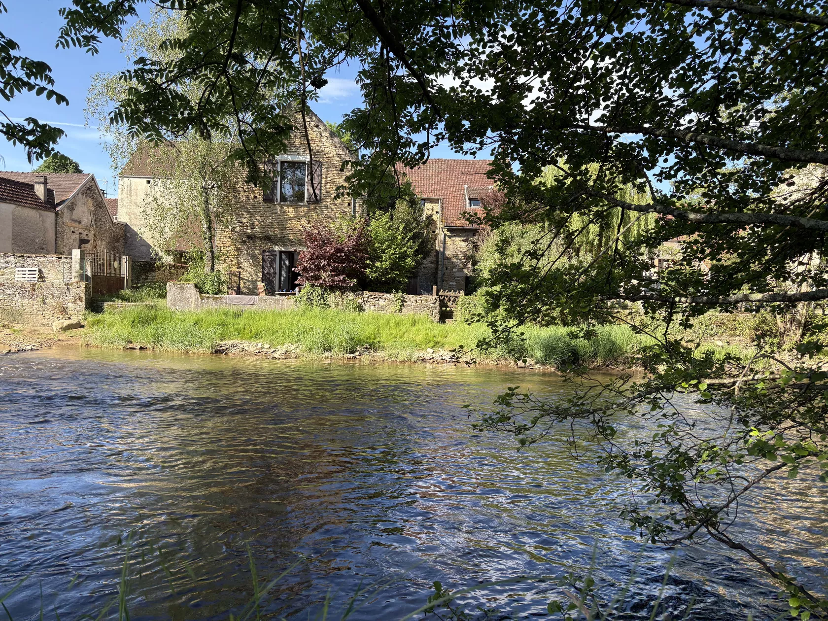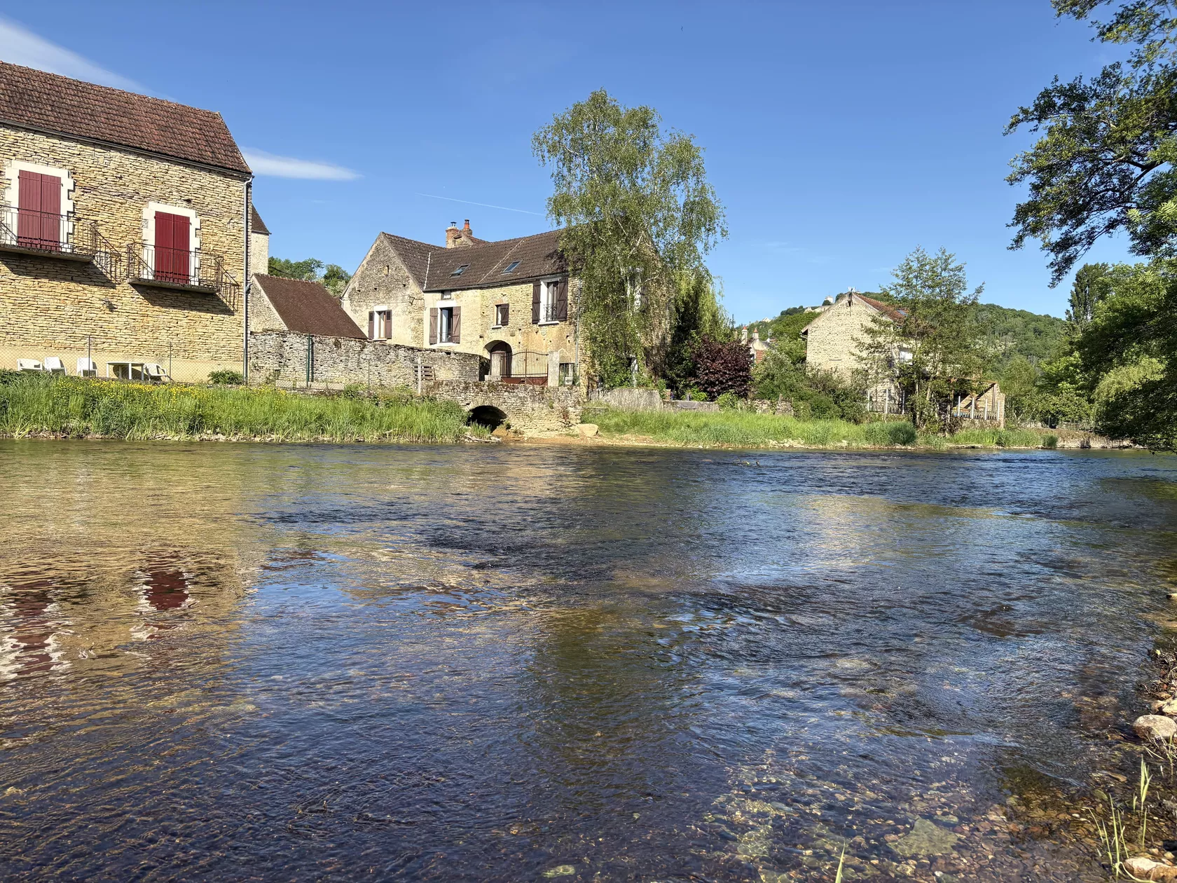In het dorp is alles bij de hand: bakker, slager en een kleine supermarkt. De keuken in de grange is in de zomer ideaal als je op het terras aan de rivier wilt eten.