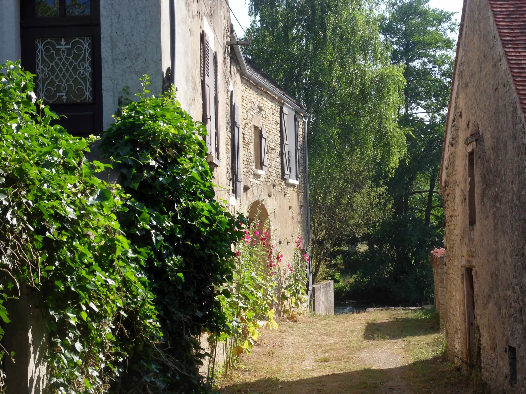 Aan het water ligt de bij het huis getrokken grange (graanschuur). Aan de andere kant van het pad ligt een oude watermolen, die sinds mensheugenis niet meer in gebruik is. Ooit was het hier een komen en gaan van boeren die er hun graan lieten malen.