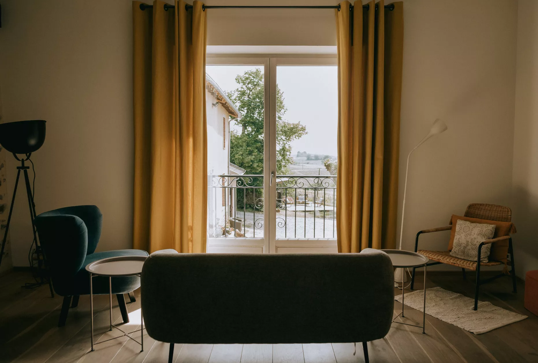 Vanachter het Franse balkon kun je genieten van de zonsopgang in de grootste gîte van Domaine Lachat.