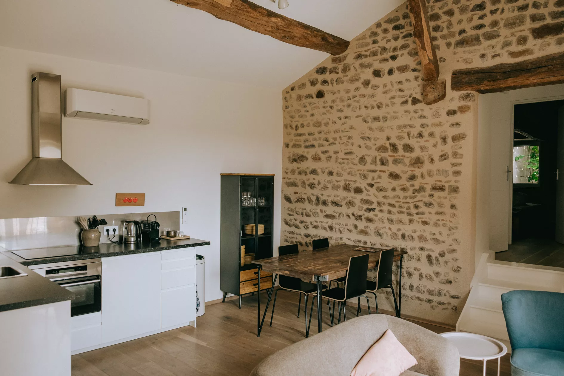De gehele gîte: Deze is voorzien van klimaatregeling, hierdoor blijft het koel in de zomer en aangenaam warm in de winter.