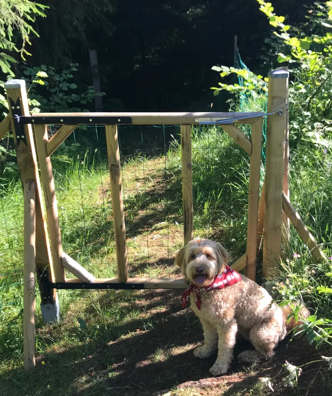 De gîte grenst aan een omheinde tuin (gemeenschappelijk) en heeft een omheind privé terras. Uiteraard mag ook de hond gebruik maken van het privé riviertje aan ons terrein. Op loopafstand van de gîte zijn er 2 watervallen en een zwemmeertje voor de hond. De hond mag (bijna) overal loslopen.