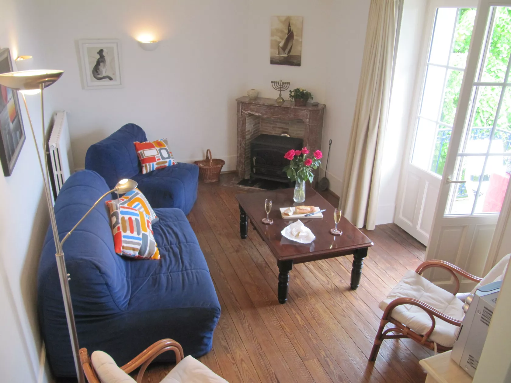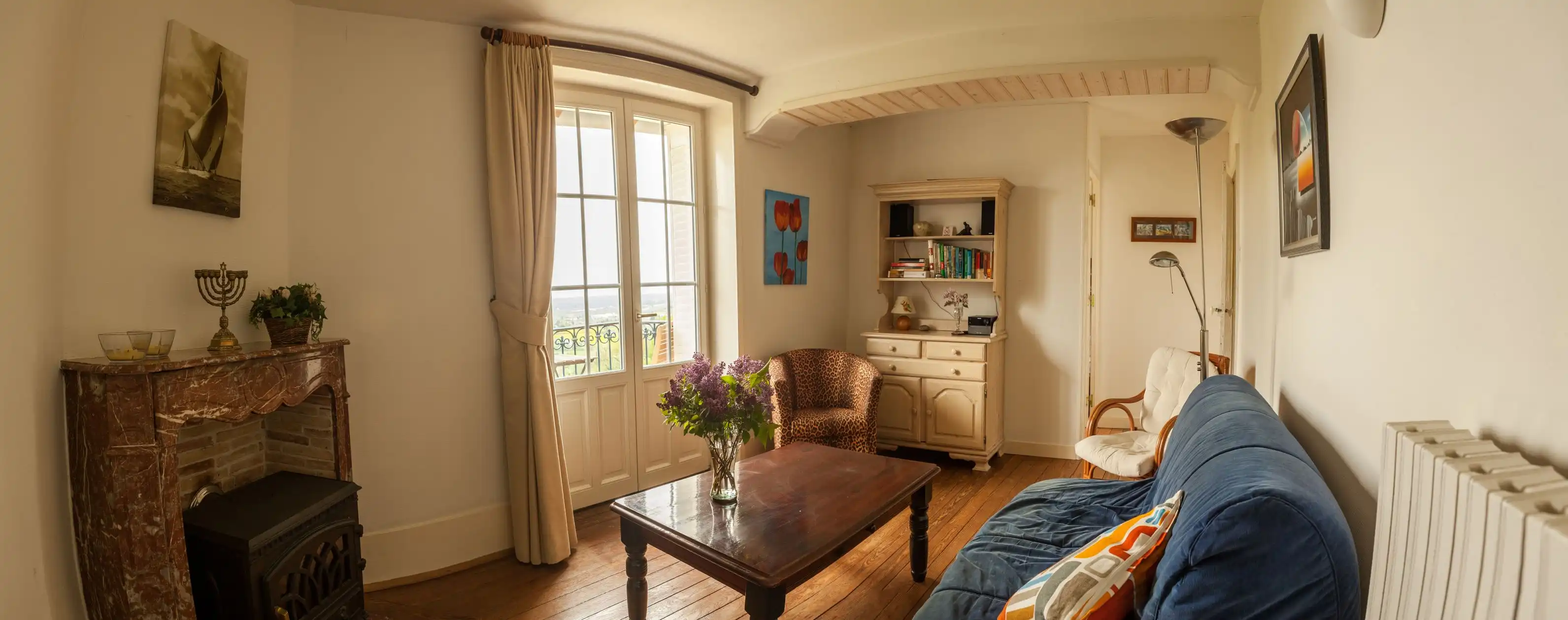 Vanuit de keuken heeft u toegang tot de zitkamer, welke onder meer is voorzien van een 2 persoons zit/slaapbank en een 1 persoons zit/slaapstoel en een fraaie schoorsteenmantel. De zitkamer geeft toegang tot het balkon en een kinderslaapkamer welke is voorzien van een stapelbed. Deze slaapkamer heeft, evenals de zitkamer, ook uitzicht op onze weide en het terras van la Montagne en heeft een prachtig vergezicht.