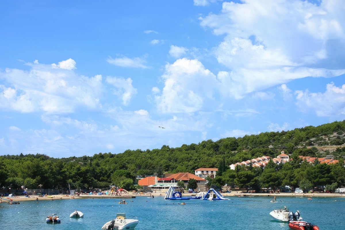 In het hoogseizoen bereikt het water al snel de aangename 25 graden. De Baai van Lovišće ligt letterlijk aan je voeten, want vanaf de camping loop je zo het strand op en het water in.