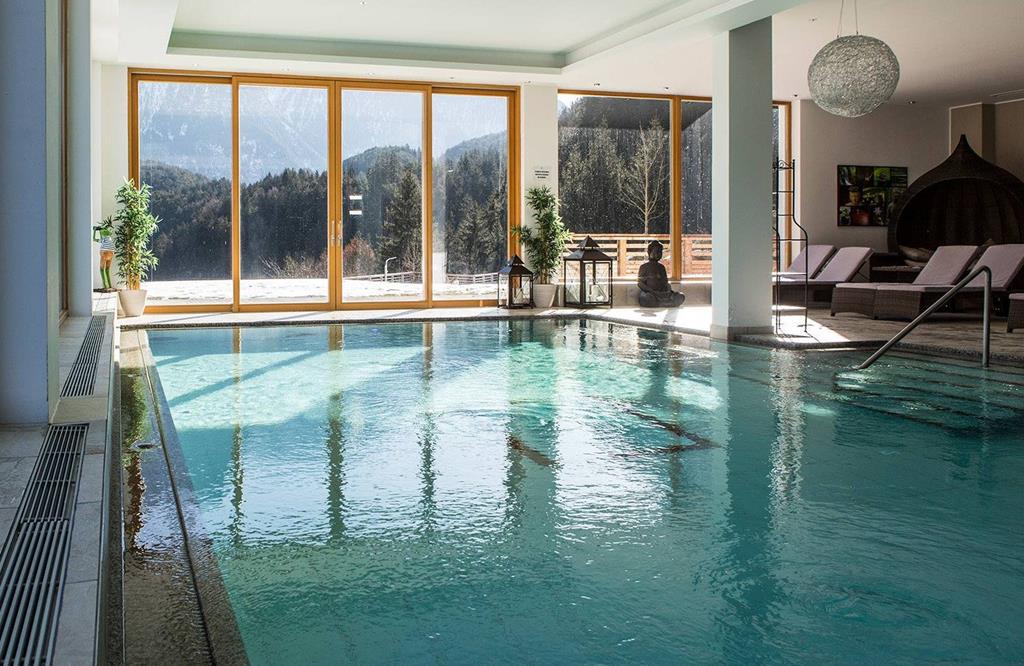 Geniet van een ontspannen verblijf in een hotel speciaal voor volwassenen, omringd door bergen en bos.