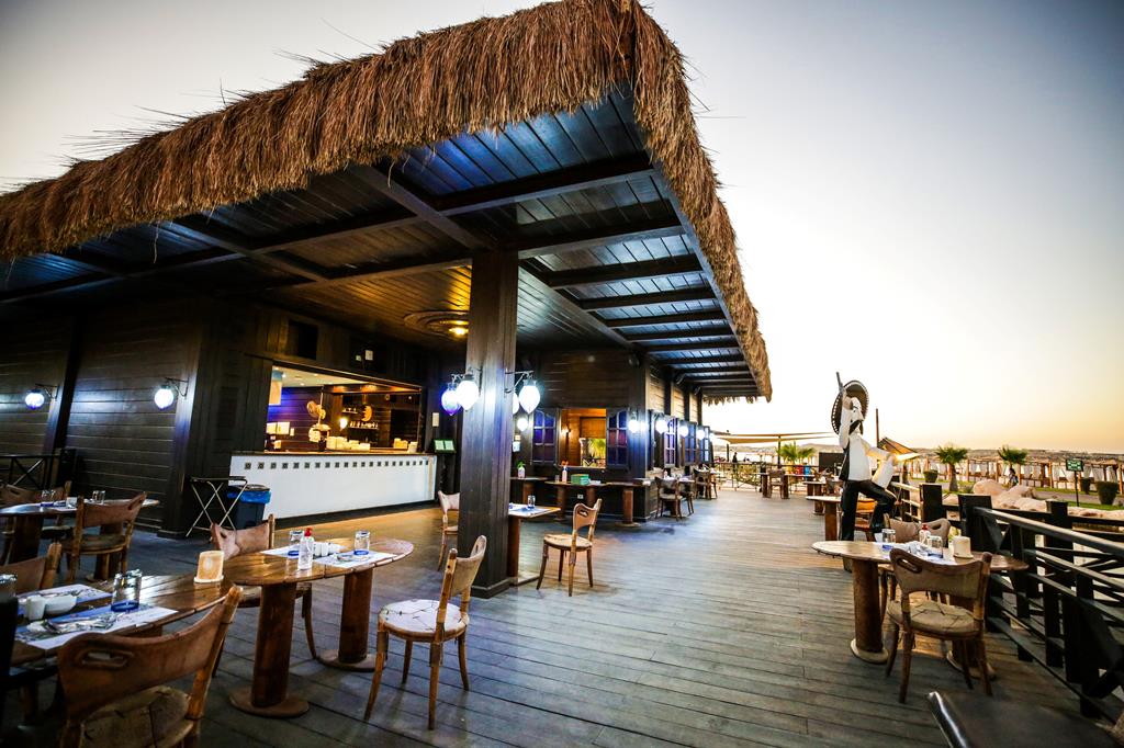Vanuit de tropische tuin loop je zo naar het zwembad en de restaurants. De restaurants zijn omgeven door een prachtig meertje en hebben zelfs een dakterras.