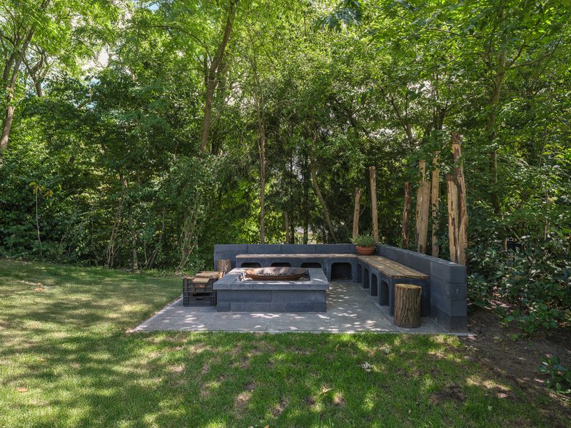 Zitlounge met buitenhaard | Airconditioning | Luxe Pergola.