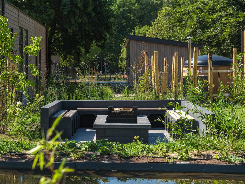 Zitlounge met buitenhaard | Airconditioning | Luxe Pergola.