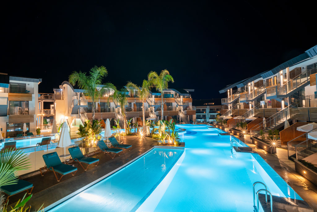 * Ligging * Gelegen aan het privéstrand * Zandstrand * Kiezelstrand * Ligbedden met matrasjes * Parasol * Dichtstbijzijnde winkel op circa 3 kilometer * Dichtstbijzijnde restaurant op circa 3 kilometer * Dichtstbijzijnde bar op circa 3 kilometer * Oludeniz op circa 25 kilometer * Ancient City Kayaköy op circa 20 kilometer * Calis op circa 5 kilometer * Fethiye op circa 12 kilometer * Bushalte (op loopafstand) * Algemeen & faciliteiten * 8 gebouwen * Maximaal 3 verdiepingen * 535 kamers * Receptie * 24 uur per dag * Lobby * 10 liften * Lift in elk gebouw * Bagageruimte * Wifi in alle openbare ruimtes * 3 winkels * Minimarkt * Wasservice tegen betaling * Doktersservice tegen betaling * Privé parkeergelegenheid * Restaurants & bars * 2 buffetrestaurants- * 5 à-la-carterestaurants (vooraf reserveren) tegen bijbetaling * Aziatisch restaurant * Grillrestaurant * Indiaas restaurant * Italiaans restaurant * Visrestaurant * Food Court * Patisserie * Roomservice tegen betaling * 11 drinkgelegenheden * 4 bars * -Bij één hiervan geldt een minimumleeftijd van 16 jaar * Beachbar * Discobar * Lobbybar * 2 poolbars * -Bij één hiervan geldt een minimumleeftijd * Sportbar * Vitaminebar * Activiteiten & ontspanning * Aerobics * Beachvolleybal * Biljart tegen betaling * Boccia * Darts * Duikcentrum tegen betaling * Fitness * Minivoetbal * Tafeltennis * Tafelvoetbal tegen betaling * Tennis * Watersporten tegen betaling * Yoga * Spa Center * Sauna * Hamam behandelingen tegen betaling * Bubbelbad binnen tegen betaling * Massages tegen betaling * Schoonheidsbehandelingen tegen betaling * Gameroom * Animatie voor volwassenen * 7 keer per week * Shows * Meerdere keren per week * Livemuziek * Meerdere keren per week * Zwembaden * 3 buitenzwembaden * Bij één van deze zwembaden geldt een minimumleeftijd van 16 jaar * tussen ca. april en mei & oktober en november * 2 buitenzwembaden voor kinderen * Eén van deze zwembaden is verwarmd tussen ca.