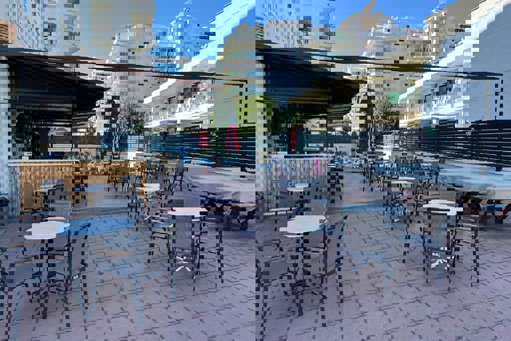 50 meter van het strand * Bushalte op ca. 30 meter * Winkels, restaurants en bars op ca. 50 meter Faciliteiten * 1 gebouw met 5 verdiepingen * 1 lift aanwezig * 20 appartementen * 24-uursreceptie * Bagageruimte * Lobby * Wifi in de lobby, bij het zwembad en de bar * Wasservice* * Openbare parkeerplaatsen *Tegen betaling Restaurants & bars * 1 poolbar Hotelkamers * 2-kamerappartement (1-4 personen) * Ca. 70 m² * Bestaat uit een woon-/slaapkamer met slaapbank en een aparte slaapkamer * Telefoon* * Airconditioning* * Kluisje* * Kitchenette * Koelkast * Koffie-/theezetfaciliteiten * 2-pits kookplaat * Magnetron * Douche in bad * Toilet * Föhn * Balkon of terras met zitje *Tegen betaling * 3-kamerappartement (2-5 personen) * Ca.