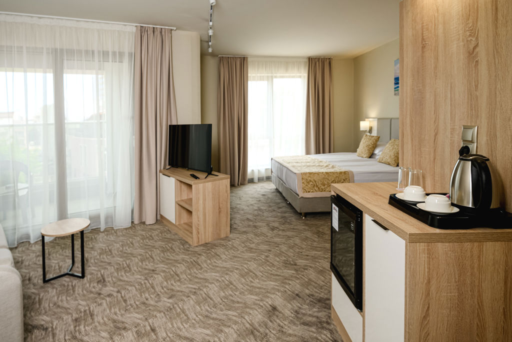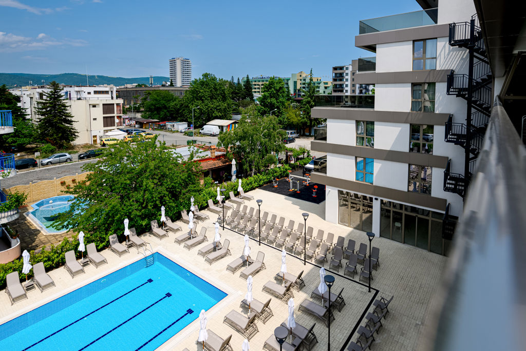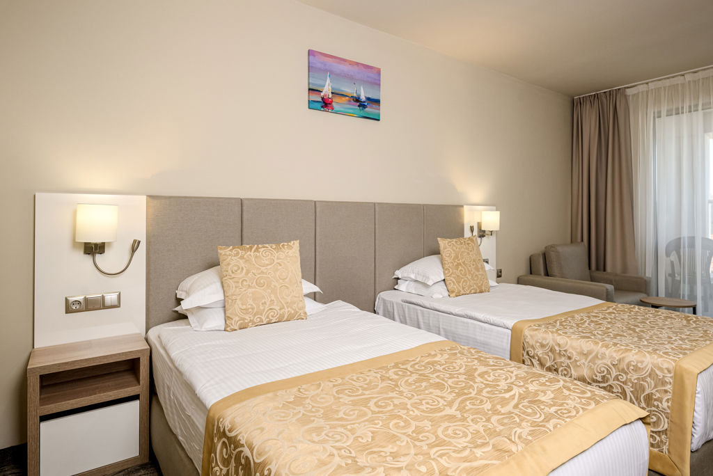 * Ligging * Openbaar strand op circa 550 meter * Zandstrand * Dichtstbijzijnde winkel op circa 400 meter * Dichtstbijzijnde restaurant op circa 100 meter * Dichtstbijzijnde bar op circa 400 meter * Luna Park op circa 300 meter * Khan's Tent op circa 5 kilometer * Nessebar Aquapark op circa 4 kilometer * Action Aquapark op circa 1,5 kilometer * Sunny Beach op circa 400 meter * Nessebar op circa 3 kilometer * Bushalte op circa 10 meter * Taxistandplaats op circa 5 meter * Algemeen & faciliteiten * 1 gebouw * Maximaal 6 verdiepingen * 60 kamers * Receptie * 24 uur per dag * Lobby * Lift * Wifi in alle openbare ruimtes * Wasservice tegen betaling * Privé parkeergelegenheid tegen betaling * Restaurants & bars * Buffetrestaurant * 2 drinkgelegenheden * Lobbybar * Poolbar * Activiteiten & ontspanning * Darts * Outdoor Fitness * Tafeltennis * Zwembaden * Buitenzwembad * Buitenzwembad voor kinderen * Aquapark tegen betaling * Beschikbaar bij Laguna Park * Zonneterras * Ligbedden * Parasol * Badhanddoekenservice * Kinderfaciliteiten * Mini club (4-11 jaar) * 6 keer per week * Buitenspeeltuin * Babybedje op aanvraag via ons contact center * Verzorging * All Inclusive * Ontbijt in buffetvorm (07.00-10.00 uur) * Laat ontbijt in buffetvorm (10.00-11.00 uur) * Lunch in buffetvorm (12.30-14.30 uur) * Diner in buffetvorm (18.30-21.00 uur) * Koffie, thee & koekjes (15.00-18.00 uur) * IJs (12.30-14.30 uur en 18.30-21.00 uur) * Selectie lokale (non-)alcoholische drankjes * Tegen betaling: import drankjesHotelkamers * 2-persoonskamer Standaard DZ * Oppervlakte van circa 28 m² * Airconditioning * Kluisje * Televisie * Telefoon tegen betaling * Eet- en drinkfaciliteiten * Koffie- en theefaciliteiten * Minibar navulling tegen betaling * Badkamer inloopdouche, toilet en föhn * Wifi * Balkon of terras (zitje) * Familiekamer Standaard FZ * Oppervlakte van circa 40 m² * Airconditioning * Kluisje * Televisie * Telefoon tegen betaling * Eet- en drinkfaciliteiten * Koffie- en theefaciliteiten * Minibar navulling tegen betaling * Badkamer inloopdouche, toilet en föhn * Wifi * Balkon of terras (zitje) * Studio Standaard SZ * Oppervlakte van circa 42 m² * Airconditioning * Kluisje * Televisie * Telefoon tegen betaling * Eet- en drinkfaciliteiten * Koffie- en theefaciliteiten * Minibar navulling tegen betaling * Badkamer inloopdouche, toilet, föhn, badjassen en badslippers * Wifi * Balkon of terras (zitje) * 2-kamerappartement 2A * Oppervlakte van circa 44 m² * Woon-/slaapkamer * Slaapbank voor twee personen * Eén slaapkamer * Airconditioning * Kluisje * Televisie * Telefoon tegen betaling * Eet- en drinkfaciliteiten * Koffie- en theefaciliteiten * Minibar navulling tegen betaling * Badkamer inloopdouche, toilet, föhn, badjassen en badslippers * Wifi * Balkon of terras (zitje) * 2-kamerappartement Superior 2AS * Oppervlakte van circa 48 m² * Woon-/slaapkamer * Slaapbank voor twee personen * Eén slaapkamer * Airconditioning * Kluisje * Televisie * Telefoon tegen betaling * Eet- en drinkfaciliteiten * Koffie- en theefaciliteiten * Minibar navulling tegen betaling * 2 badkamers * Wifi * Balkon of terras (zitje).