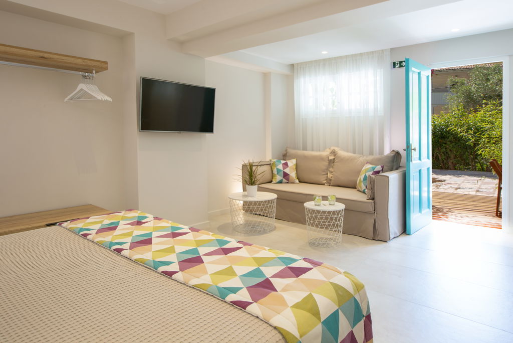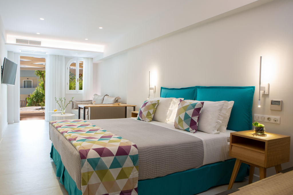 20 m² * Airconditioning * Televisie * Telefoon* * Minibar* * Wifi * Douche * Toilet * Föhn (op aanvraag) * Balkon of terras met zitje *Tegen betaling * Deluxe kamer zijzeezicht (2 personen) * Ca. 20 m² * Dezelfde faciliteiten als de Standaardkamer * Koffie- en theefaciliteiten * Studio tuinzicht (2-4 personen) * Ca. 35 m² * Airconditioning * Kluisje * Televisie * Telefoon* * Kitchenette * 2-pits kooktoestel * Oven * Broodrooster * Koffie- en theefaciliteiten * Koelkast * Wifi * Douche * Toilet * Föhn * Balkon of terras met zitje *Tegen betaling * 2-kamerappartement Maisonnette zeezicht (3-5 personen) * Ca. 60 m² * In maisonettestijl * Dezelfde faciliteiten als de Studio Verzorging Zomer: Hotel Odyssey * Verblijf o.b.v.