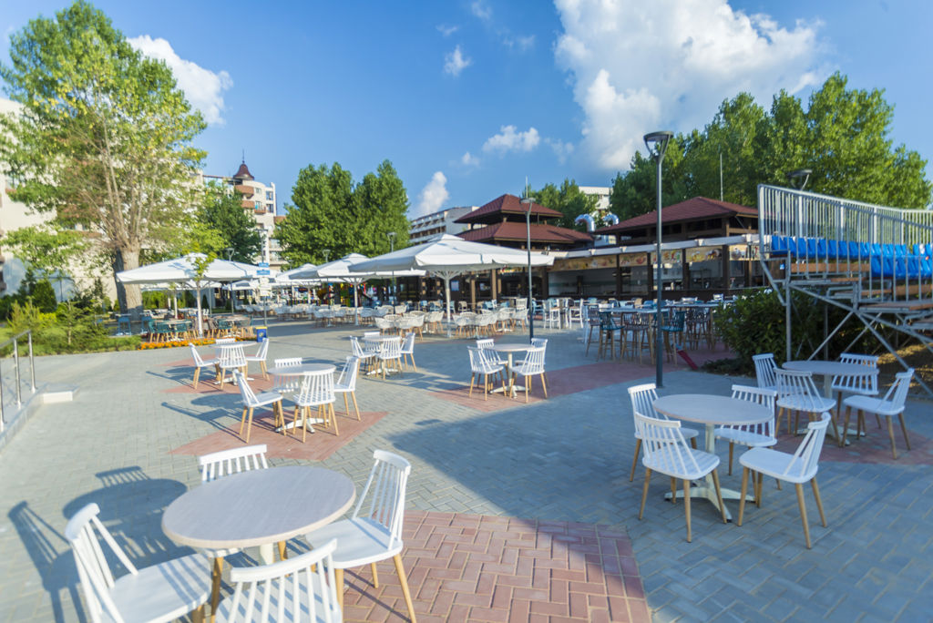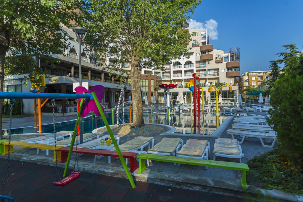 * Ligging * Openbaar strand op circa 150 meter * Privégedeelte van de accommodatie * Zandstrand * Ligbedden met matrasjes * Dichtstbijzijnde restaurant op circa 50 meter * Dichtstbijzijnde bar op circa 100 meter * Nessebar op circa 3 kilometer * Bushalte op circa 100 meter * Algemeen & faciliteiten * 2 gebouwen * Maximaal 8 verdiepingen * 494 kamers * Receptie * 24 uur per dag * Lobby * 5 liften * Lift in elk gebouw * Bagageruimte * Wifi in diverse openbare ruimtes * Winkel * Wasservice tegen betaling * Doktersservice tegen betaling * Tuin * Openbare parkeergelegenheid tegen betaling * Privé parkeergelegenheid tegen betaling * Restaurants & bars * 2 buffetrestaurants * Themabuffetten * 3 à-la-carterestaurants (vooraf reserveren) * Aziatisch restaurant Eén keer per week gratis dineren in dit óf een ander geselecteerd à-la-carterestaurant * Grillrestaurant tegen betaling * Mediterraans restaurant Eén keer per week gratis dineren in dit óf een ander geselecteerd à-la-carterestaurant * 3 drinkgelegenheden * Bar * 2 lobbybars * Activiteiten & ontspanning * Beachvolleybal * Biljart tegen betaling * Boccia * Darts * Midgetgolf tegen betaling * Tafeltennis * Spa Center * Binnenzwembad * Sauna tegen betaling * Hamam tegen betaling * Bubbelbad binnen * Massages tegen betaling * Fitnessruimte * Animatie * 6 keer per week * Shows * 6 keer per week * Zwembaden * 2 buitenzwembaden * Buitenzwembad voor kinderen * 2 glijbanen * Splashpool voor kinderen * Zonneterras * Ligbedden met matrasjes * Badhanddoekenservice gratis met borg * Kinderfaciliteiten * Mini club (4-12 jaar) * 6 keer per week * Minidisco * Buitenspeeltuin * Babybedje op aanvraag via ons contact center * Verzorging * Ultra All Inclusive * Ontbijt in buffetvorm (07.30-10.00 uur) * Laat ontbijt in buffetvorm (10.00-12.00 uur) * Lunch in buffetvorm (12.00-14.00 uur) * Diner in buffetvorm (18.00-21.00 uur) * Dineren in 2 à-la-carterestaurants 1 keer per verblijf bij een verblijf van minimaal 5 dagen * Snacks (12.00-17.00 uur) * Koffie, thee & koekjes (10.00-00.00 uur) * IJs (12.00-17.00 uur) * Middernachtsnack (01.00-06.00 uur) * Selectie geïmporteerde alcoholische drankjes (11.00-00.00 uur) * Selectie lokale (non-)alcoholische drankjes (24 uur per dag)Hotelkamers * 2-persoonskamer Standaard DZ * Oppervlakte circa 25 m² * In een bijgebouw * Airconditioning * Kluisje * Televisie * Telefoon tegen betaling * Eet- en drinkfaciliteiten * Koelkast * Badkamer douche, toilet en föhn * Wifi * Balkon of terras (zitje) * 2-persoonskamer Deluxe DD * Oppervlakte circa 30 m² * In het hoofdgebouw * Airconditioning * Kluisje * Televisie * Telefoon tegen betaling * Eet- en drinkfaciliteiten * Koelkast * Badkamer douche, toilet en föhn * Wifi * Balkon of terras (zitje) * 2-persoonskamer Deluxe Zijzeezicht DDI * Oppervlakte circa 30 m² * In het hoofdgebouw * Zeezicht * Airconditioning * Kluisje * Televisie * Telefoon tegen betaling * Eet- en drinkfaciliteiten * Koelkast * Badkamer douche, toilet en föhn * Wifi * Balkon of terras (zitje) * Studio Standaard (Park View) SZ1 * Oppervlakte circa 35 m² * In het hoofdgebouw * Airconditioning * Kluisje * Televisie * Telefoon tegen betaling * Eet- en drinkfaciliteiten * Koelkast * Badkamer douche, toilet en föhn * Wifi * Balkon of terras (zitje) * 2-kamerappartement Deluxe 2AD * Oppervlakte circa 40 m² * In het hoofdgebouw * Woon-/slaapkamer * Eén slaapkamer * Airconditioning * Kluisje * Televisie * Telefoon tegen betaling * Eet- en drinkfaciliteiten * Koelkast * Badkamer douche in bad, toilet en föhn * Wifi * Balkon of terras (zitje) * 3-kamerappartement (Family) 3A1 * Oppervlakte circa 45 m² * In het bijgebouw * Op de begane grond * Woon-/slaapkamer * 2 slaapkamers * Airconditioning * Kluisje * Televisie * Telefoon tegen betaling * Eet- en drinkfaciliteiten * Koelkast * Badkamer douche, toilet en föhn * Wifi * Balkon of terras (zitje).