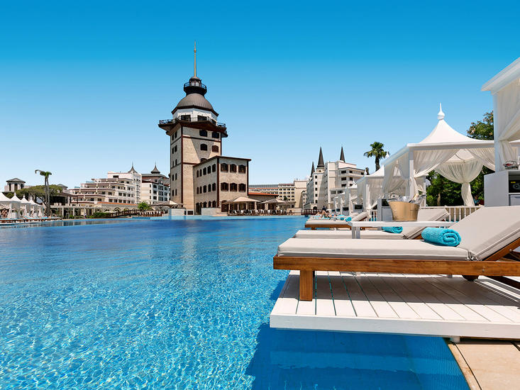 In het zonovergoten Lara, direct aan het strand van Kundu, ligt het indrukwekkende 5-sterrenhotel Titanic Mardan Palace.