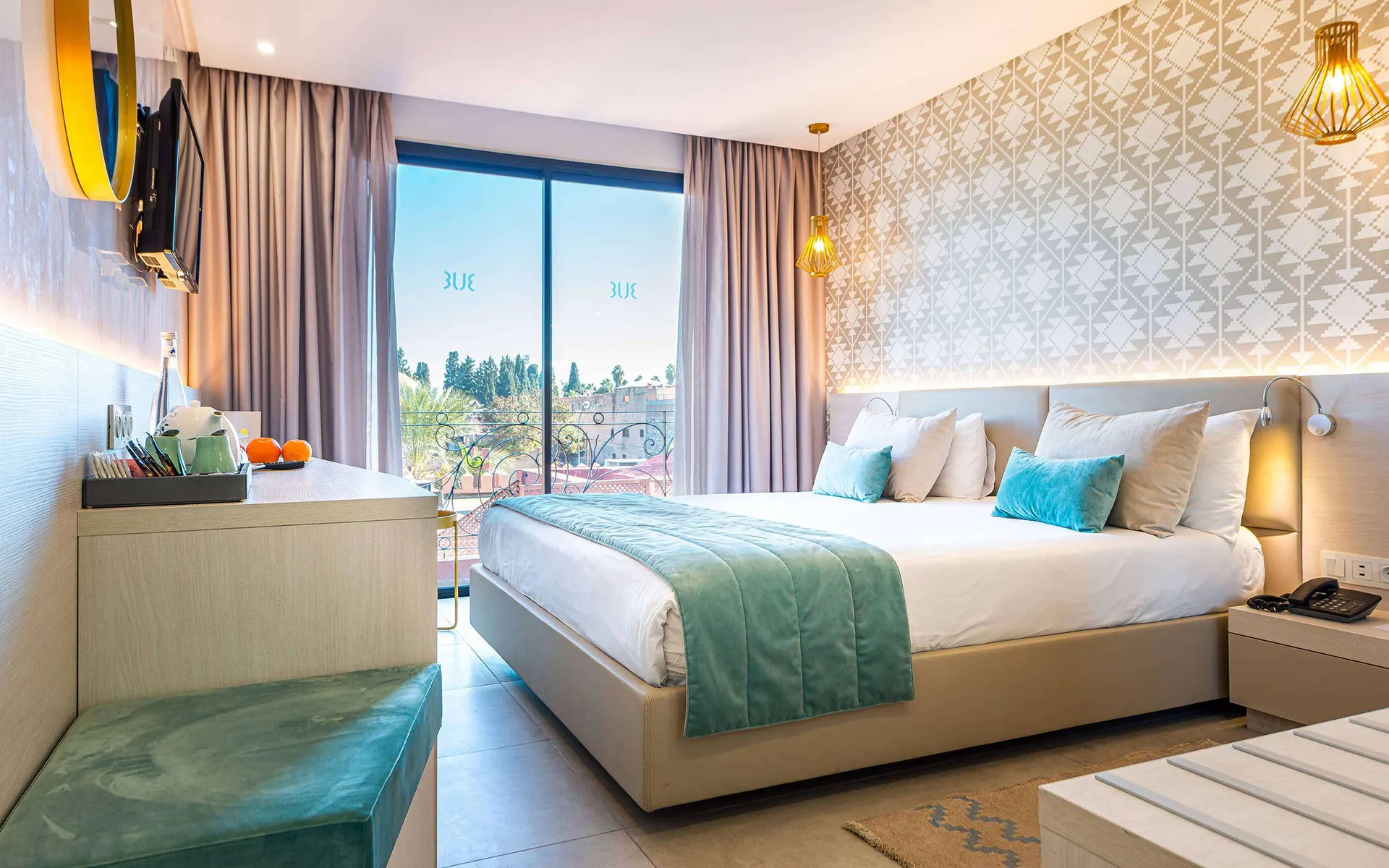 Het hotel beschikt over vele faciliteiten die ervoor zorgen dat het je aan niets zal ontbreken tijdens een stedentrip Marrakech. Neem bijvoorbeeld een verfrissende duik in één van de zwembaden waarover het hotel beschikt. De sportliefhebbers kunnen aan de slag in de fitnessruimte of op de graveltennisbaan. Na alle inspanningen kun je, tegen betaling, ontspannen in de Blue Spa.